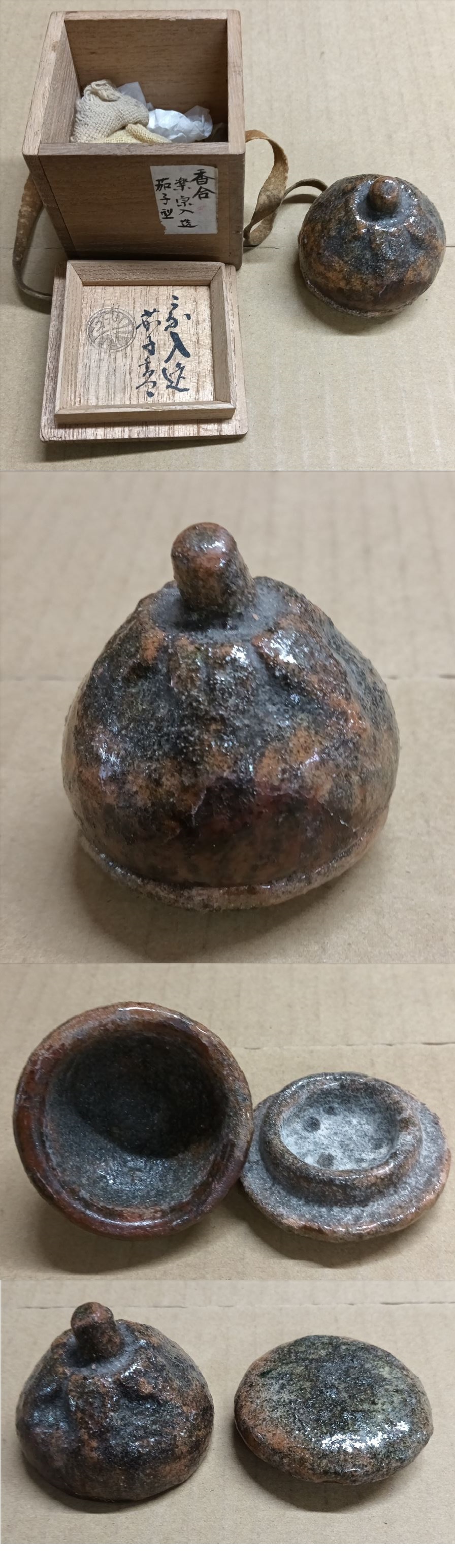 五代楽吉左衛門 宗入 赤楽 茄子 香合 十代楽吉左衛門 旦入 鑑定箱 茶道具 保証品