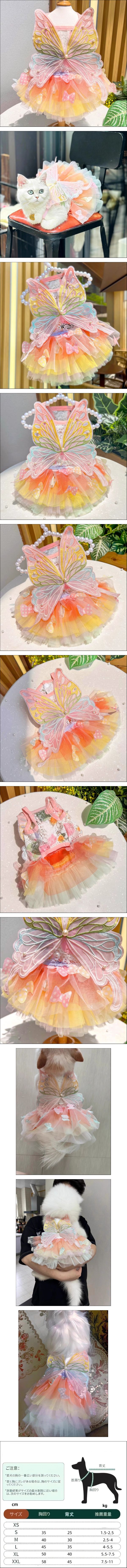 犬服 ペット用 プリンセスドレス フェアリースタイル 蝶々 羽付き ふわふわチュール ワンピース ウェディングドレス風 猫用 春夏 可愛い | |||