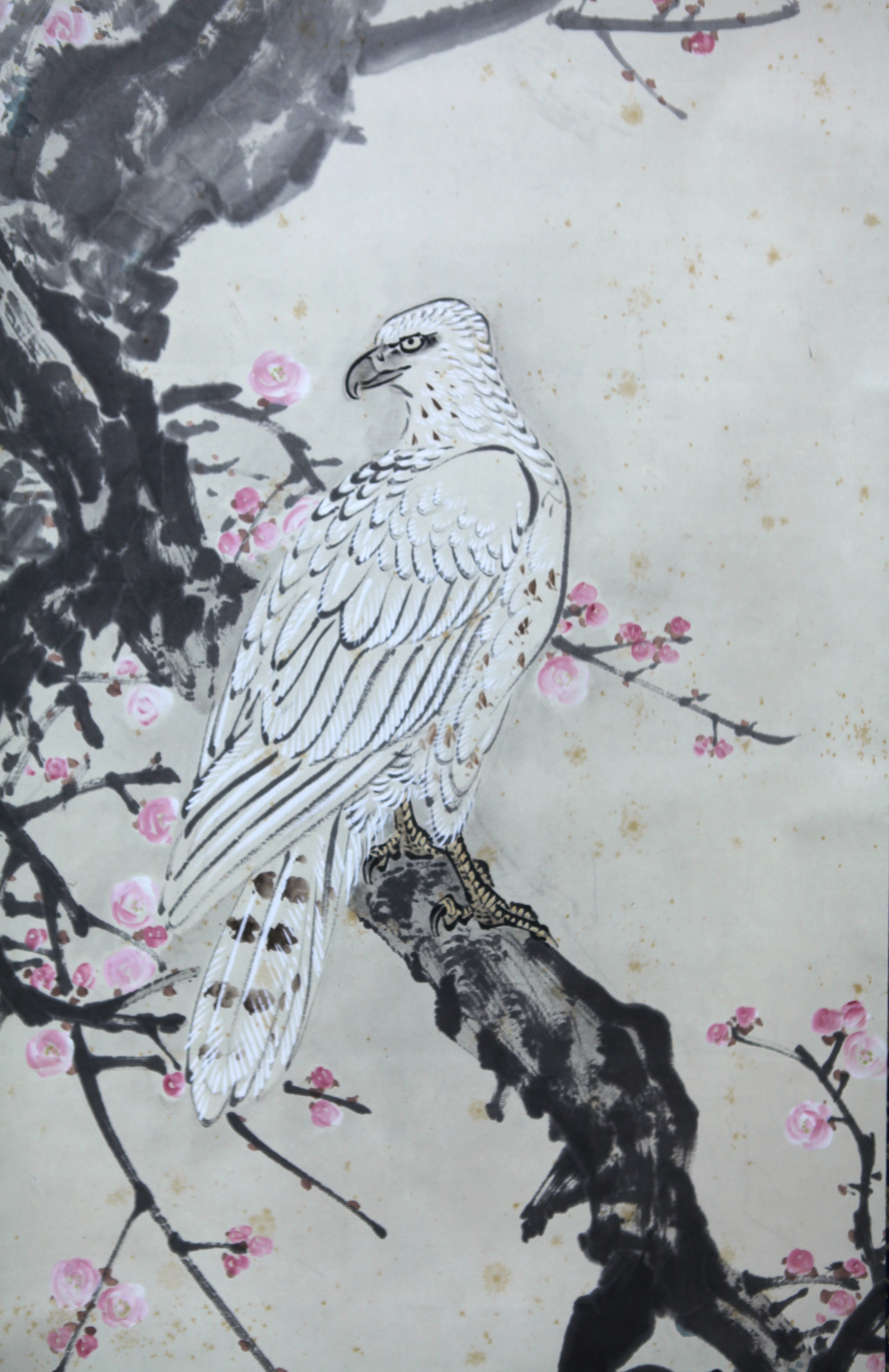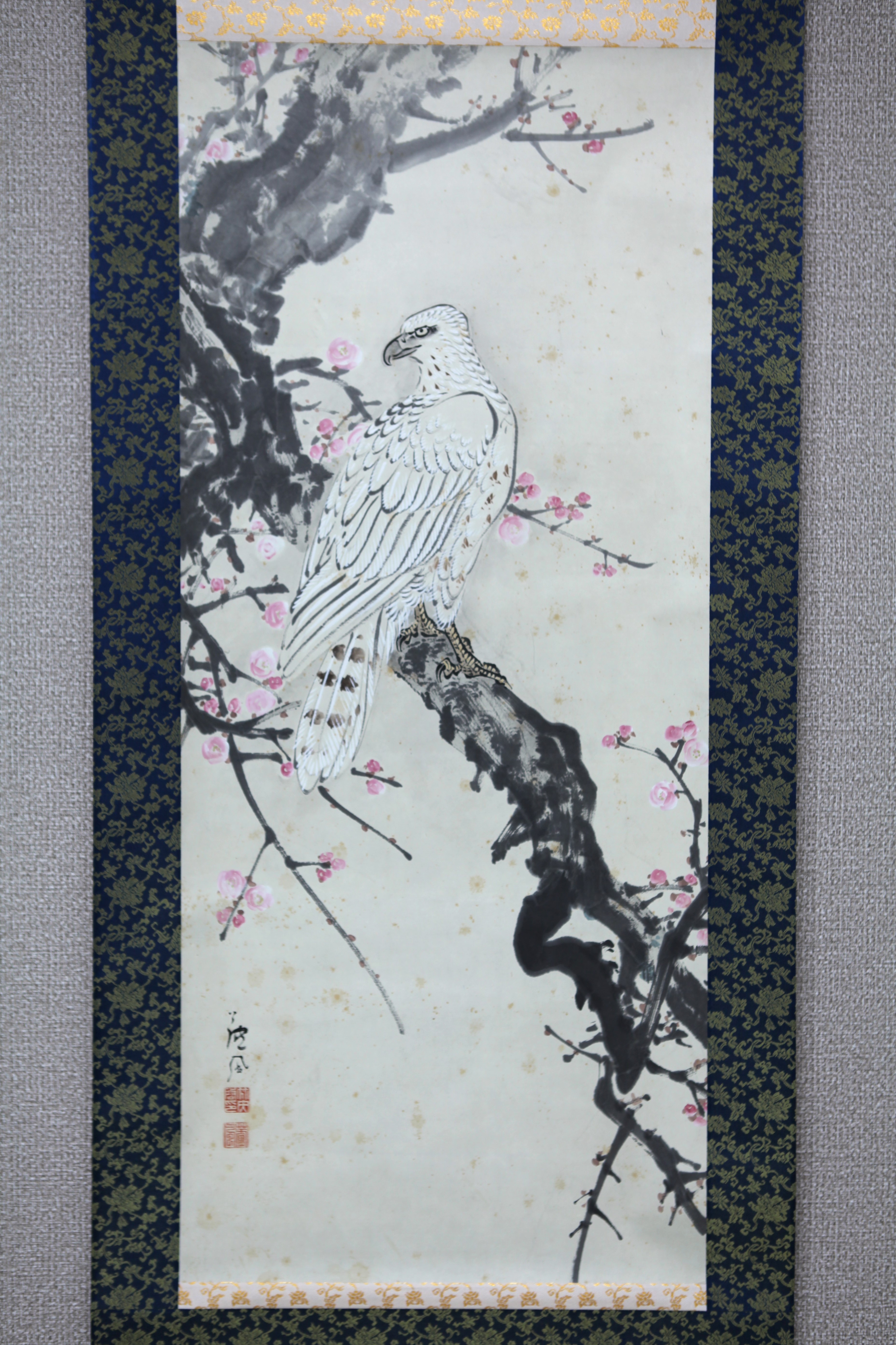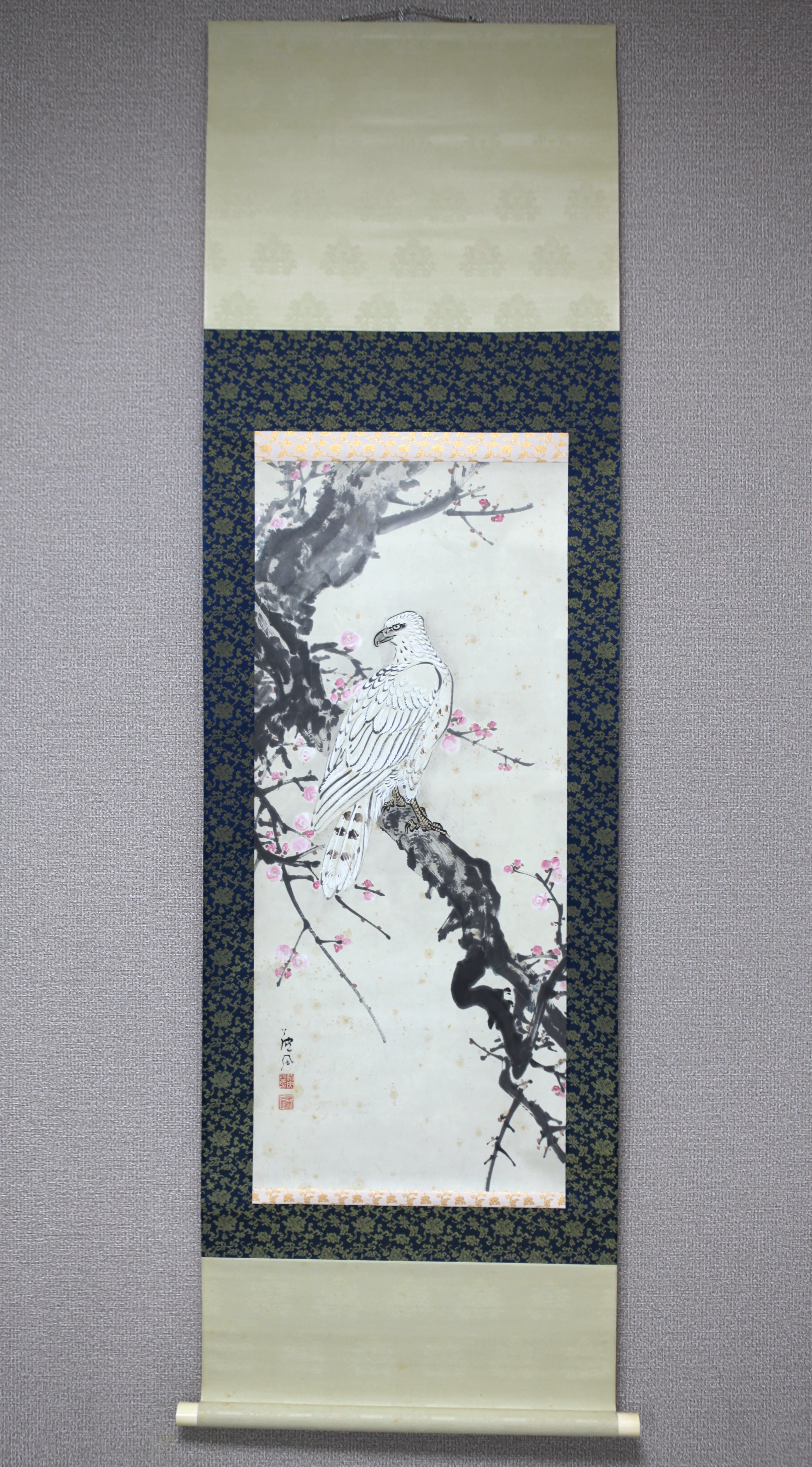 | 【真作】【風車】 竹内蘆風 「紅梅白鷹」◎肉筆紙本◎新潟県の人 川端玉章師事 山水花鳥画得意 | ||||||||||||||||||||