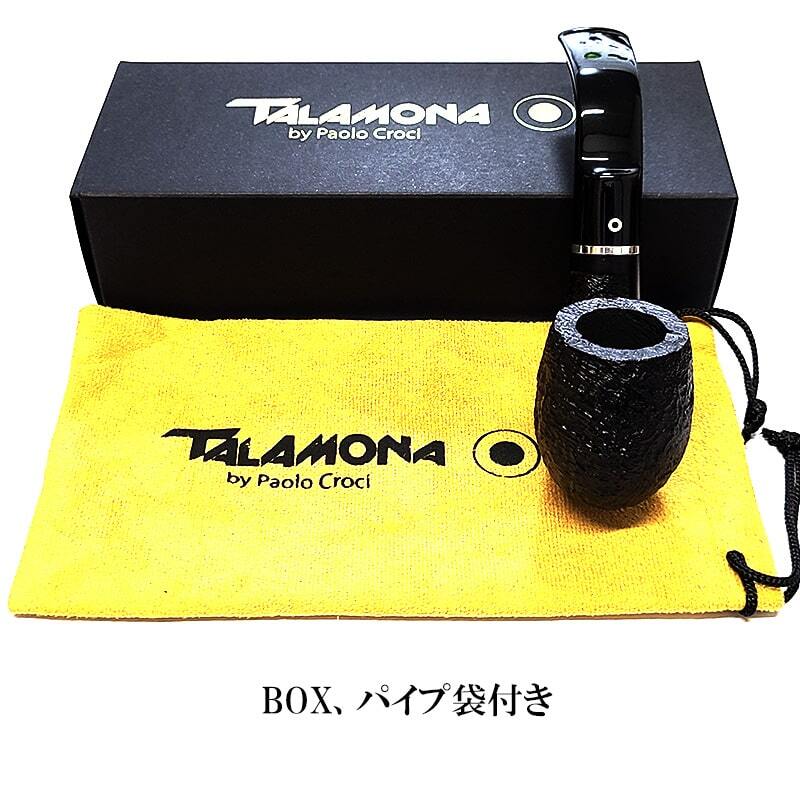 | 商品説明 | 【TALAMONA Pipes CS SA/BK 901】 「タラモナ パイプ」作家のパオロ・クロッシによるイタリア製ハンドメイドパイプです。 ボウルには天然木を使用しており、サンドブラスト仕上げによるブラックの艶と陰影が堪能できる美しい逸品。 コリネーリオ・タラモナの再来と呼ばれるパイプアーティストPaolo Croci(パオロ・クロッチ)の芸術性が味わえる仕上がり。 また、こちらのパイプは吸い口とボウルをつなぐ金具部分は真鍮製となっております。 専用の保存袋とボックス付きで、プレゼントにも大変おすすめです。 -TALAMONA- 1930年代、イタリアCornelio Talamona(コリネーリオ・タラモナ)は、その芸術性溢れる作風で瞬く間に愛煙家垂涎のブランドへと駆け上がる。その後、Cesare Talamona(チェザーレ・タラモナ)へと引き継がれた伝統は、イタリアパイプシーンを席巻し、全盛期を誇る。2010年惜しまれつつも消滅してしまうが、コリネーリオ・タラモナの再来と呼ばれるパイプアーティストPaolo Croci(パオロ・クロッチ)が、その芸術性により見事復活を遂げた。Made in Italyでのみ味わえる美しさが堪能できる珠玉の“Handmade Pipe”である。 |