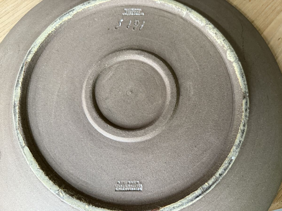 南スウェーデンにあったTallhojdens Stengods社の大皿。デザインはSture Gustaf Ohlssonで裏に刻印があります。
