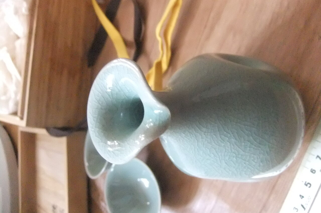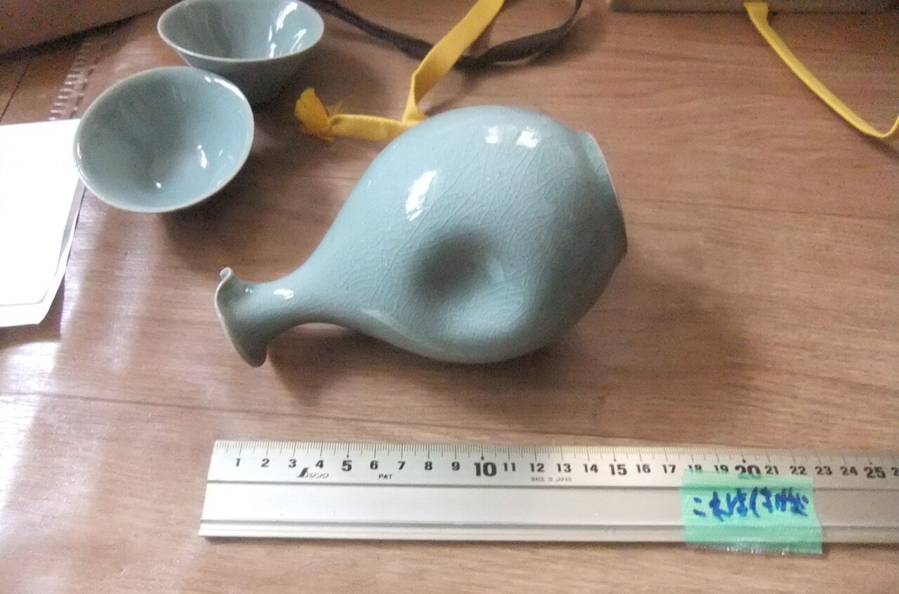 | 未使用品 木箱付き 2点セット 虫明焼き 虫明窯 松本学 扶林窯 青磁 徳利 御猪口 茶碗 | |