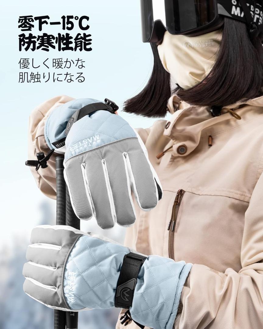 スマホ対応防寒 防水 グローブ スノボ 手袋 レディース ブルー