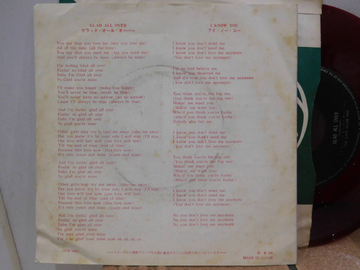 ○デイブ・クラーク・ファイブ THE DAVE CLARK FIVE/グラッド・オール・オーバー/アイ・ノウ・ユー 赤盤EPレコード OR-1064