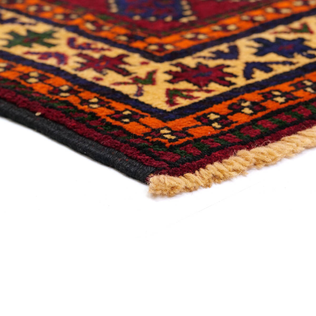 1970年代にグーチャンの遊牧民によって手織りされたセミアンティークラグです。幾何学的なスクエアモチーフが全体に規則正しく並び、赤を基調に緑、黒、紺、橙がバランスよく組み合わされています。伝統的でありながら洗練された雰囲気を感じさせるデザインです。