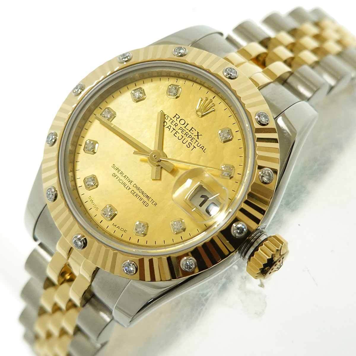 | 商品概要 | ロレックスから大人気のレディース腕時計『デイトジャスト』です☆12Pダイヤベゼル&2Pダイヤに加えK18イエローゴールドがゴージャスなデザイン!小さいながらも高級感漂うアイテムとなっております♪ |