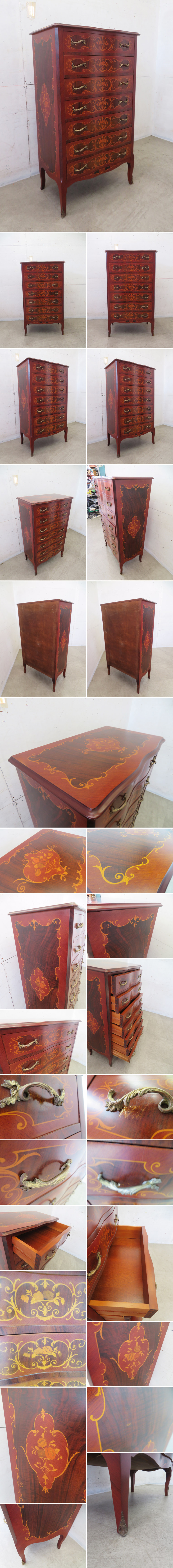 ■P083■美品■イタリア■マルコーニアルテ社製■7段ハイチェスト■猫脚■象嵌細工■伝統工芸■最高級■ [浏览原始页面]