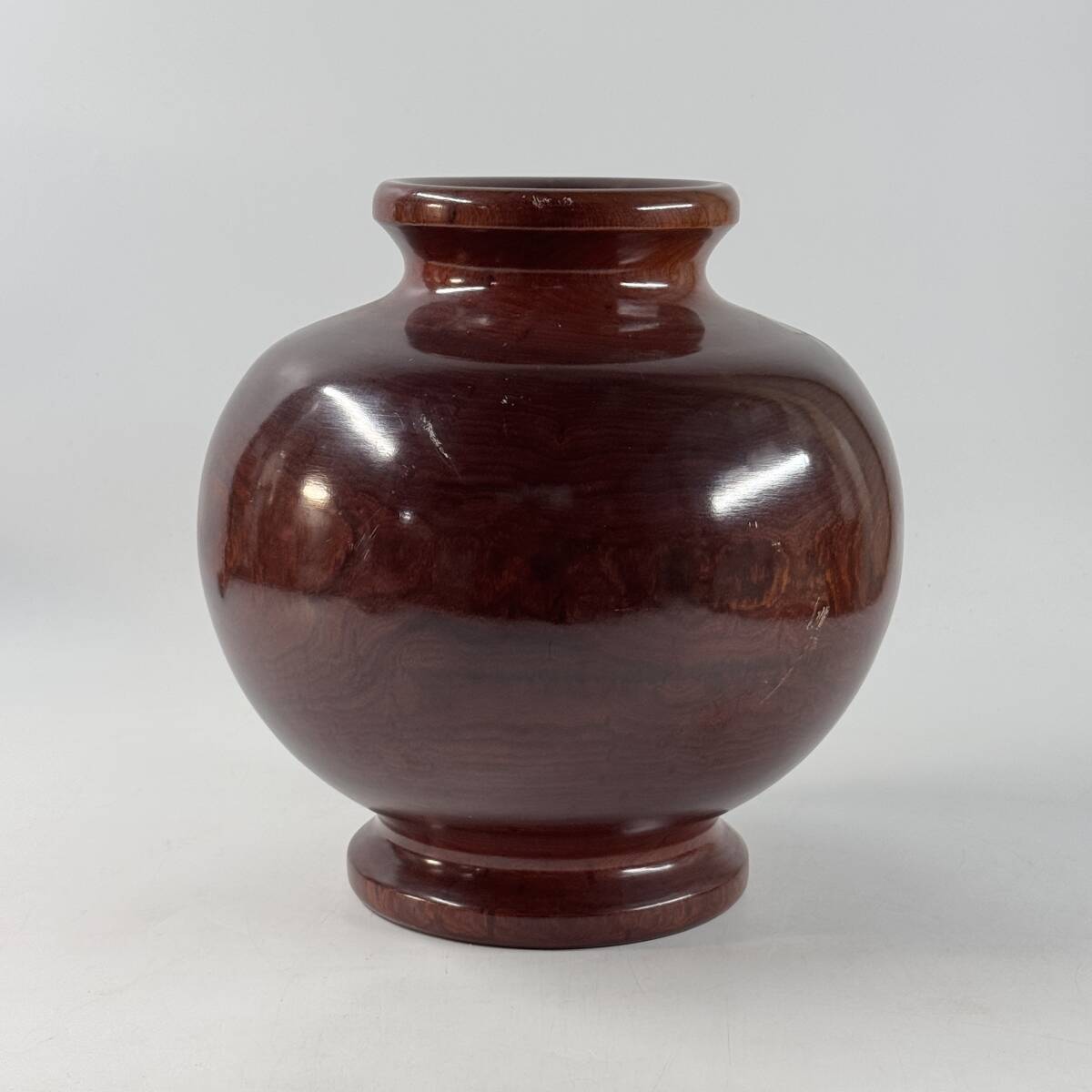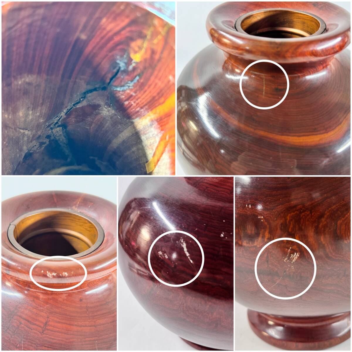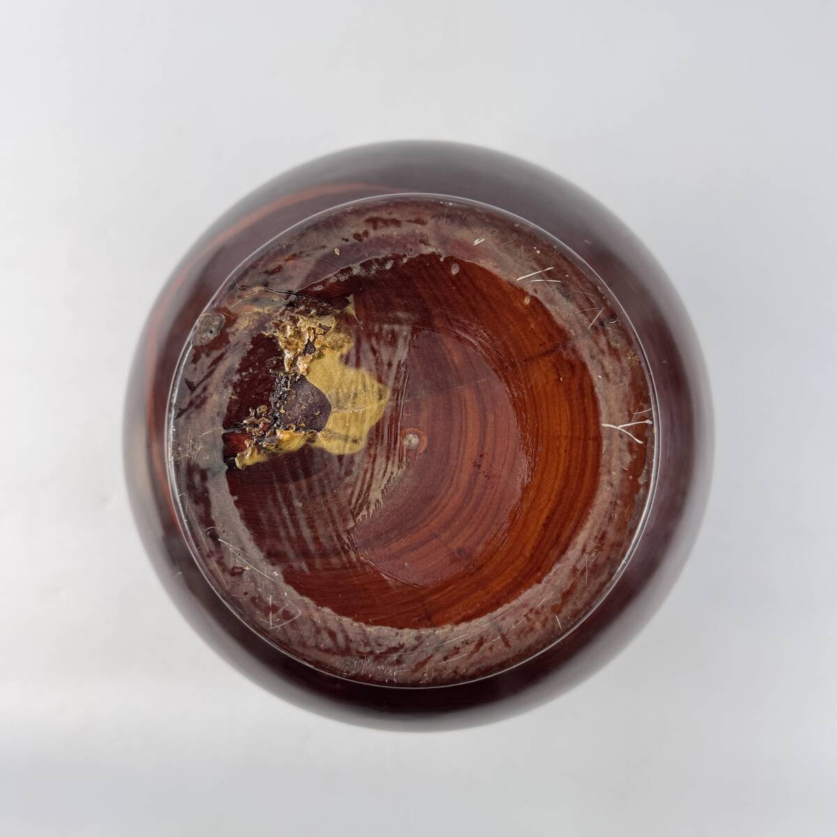 無銘 技法製作元作家名不詳 木製? 樹脂加工 直径26㎝×高さ27㎝ 花器 花瓶 花入 花生 華道具 茶道具 経年保管品 現状品の出品です。