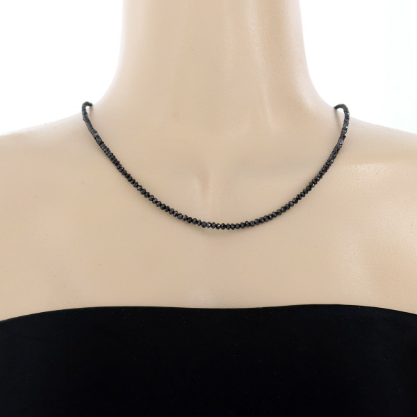 | 商品紹介 | 細やかなブラックダイヤモンドを贅沢に連ねた、エレガントな一連ネックレスです。 ダイヤモンドならではの硬質な輝きが、光を受けるたびにクールな存在感を放ちます。 落ち着いたブラックのトーンが肌に映え、装いにシックな華やぎを添えてくれる一本です。 シンプルなデザインだからこそ、フォーマルなシーンからカジュアルな装いまで幅広くお使いいただけるネックレスです。 |
