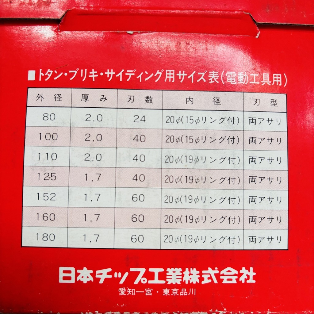 | NIPPON 日本チップ工業 トタン ブリキ サイディング用チップソー 外径80 厚み2,0 刃数24 内径20 5枚セット 未使用保管品 | ||