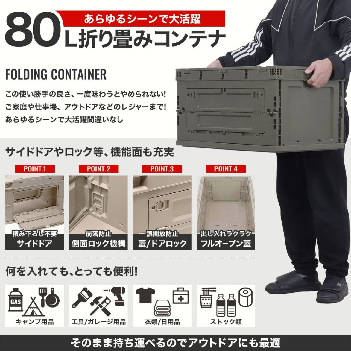 商品説明 ITEM INFO 積んだまま取出せる!通称オリコン 不要な時は折りたたんでコンパクトに収納! 不要な際は折りたたんでコンパクトに収納。使う時はさっと引き上げて展開するだけで大容量80Lのコンテナに早変わりです! 通称オリコン。コンビニなどでも使用されておりその使い勝手の良さは一度味わうとなかなかやめられないかも!? 当店のオリコンは通常のオリコンに比べ更に以下の点が優れております。 ■崩落防止サイドロック付き 組立が甘かったり、不意に支え側の壁を押してしまったりすると崩れてしまうことがあります。サイドロックは支え側の壁が外れてしまうことをロックし、崩落を防止します。とくに重ねて使用されている場合、崩落は大きな事故にもつながりますので安心です。 ■中窓付きで中身をラクラク取り出し 長辺側・短辺側の壁一つずつに中窓が設置されています。積み重ねてのご使用時も、いちいち上のコンテナを降ろさなくても中身を取り出すことができます。ラックやロッカーのようなイメージで使用可能です。 ■中窓&蓋には誤開封/いたずら防止ロック付き 2箇所ある中窓および蓋にロック機構を搭載しています。お子様やペットのイタズラや運搬時の誤開封を防止できます。 シンプルなデザインで、しかもカラーラインナップも豊富♪インテリアのイメージに合わせてチョイスできます。衣装ケース、おもちゃ箱、ガレージのカー用品、工具箱、アウトドアグッズ収納などに! 商品基本情報・スペック ITEM SPEC ●商品名 : ミリタリーベース 折り畳みコンテナ 80L 中窓2箇所付(長辺1&短辺1) ●商品番号 : FDC0009B ●ブランド : MILITARY BASE(ミリタリーベース) ●カラー : ブラック ●外形寸法 : 642×433×355(mm)(各部最大 W×L×H) ●内部寸法 : 605×400×320(mm)(W×L×H) ●折り畳み時の厚さ : 86mm(積上時76mm) ●長辺中窓寸法 : 500×185(mm) ●短辺中窓寸法 : 287×220(mm) ●重量 : 約4kg ●許容積載荷重 : 40kg(静荷重) ●最大積み上げ箱数 : 5箱 注意事項 ITEM NOTE ∇商品固有の注意事項 ※他社製コンテナとは底面、及び天面の形状・サイズなどが異なる可能性があります。ご注意ください。 ※同80Lシリーズは5段まで積み上げが可能です。(転倒防止対策は必ず行ってください。) ∇ご購入時の留意事項 ※商品はすべて点検してからのお届けになります。商品によってはパッケージの開封等を行う場合もございますことをご了承ください。 ※商品には万全を記しておりますが、万一不備な点がございましたら、お手数ですがお問い合わせフォームにてご連絡頂ますようお願い致します。なお、海外製品につきましては、輸入時についた若干の傷、痛み等が見られる場合がございます。 国内製品のような完全品をお求めの方はご遠慮下さい。 ※商品が適合外であった場合、またはお客様都合による交換・返品・返金は出来ません。よくお確かめの上、ご購入下さい。 ※モニター環境により、実際の商品の色と若干異なる場合がございますのでご了承下さい。 ※他サイトでも同時販売の為売り切れの際はご了承下さい。 ※売り切れの際は早急にご連絡させて頂きます。(当社休業日を除く) 関連商品 RELATED ITEM |