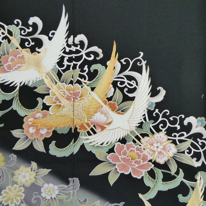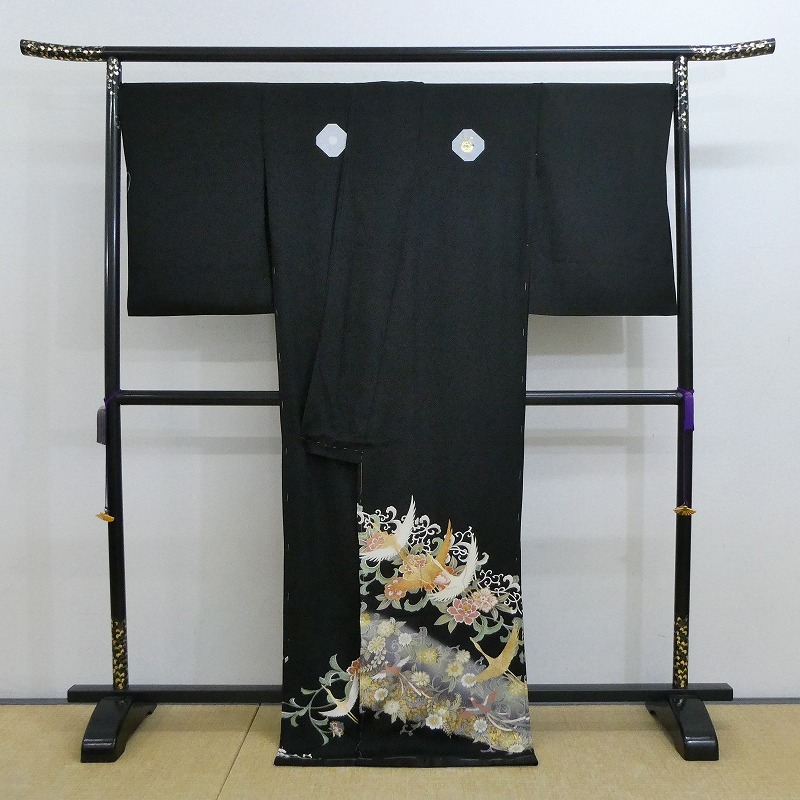 ◆黒留袖/作家物/駒取り刺繍/箔/鶴と花柄/リメイク・材料等に/新品/未仕立て/正絹/絵羽/(梱包サイズ:80)◆* コメント・全体的に薄汚れ・薄い色ヤケがあり、一部シミ・汚れ・箔の剥がれがあります。 ・新品ですが、経年保存されていたお品ですので、ご理解のある方のご入札をお願い致します。 ・シミ、ヤケ等の難がある為、リメイク・材料・素材用としてご入札ください。 ・ ・ * 品質・サイズ -- 着物サイズ目安 -- ・身丈・約168cm、袖丈・約58cm、裄・約68cm ・五つ紋:石持ち ・ ・※一部商品のみのお取引はお断り致しております。入札前・落札後に一部の商品のみのお取引交渉や発送方法(メール便等利用)の交渉はご遠慮下さい。サイズ・発送詳細を必ずご確認のうえ、ご理解・ご納得のうえでのご入札をお願い致します。 ・梱包サイズ:80サイズ(発送詳細必読) * 程度 当社基準ランク・・・【6】