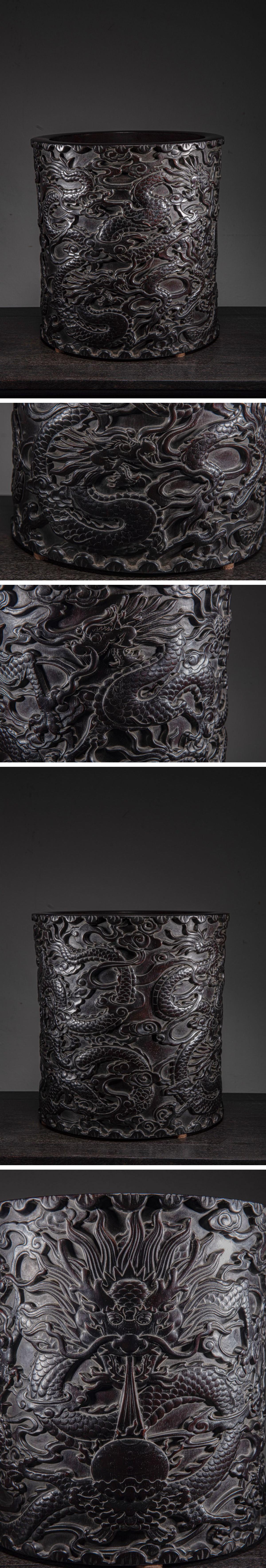 【清】某有名オークション購入 清時代 紫檀木 群龍文筆筒 当時物保証 材質保証 古置物 古擺件 古美術 時代コレクション7L10-FX7