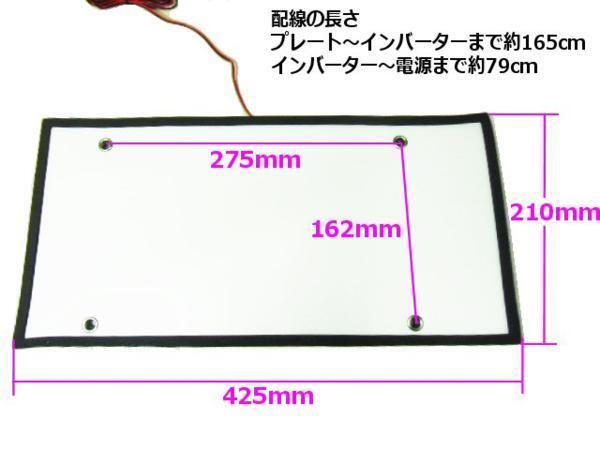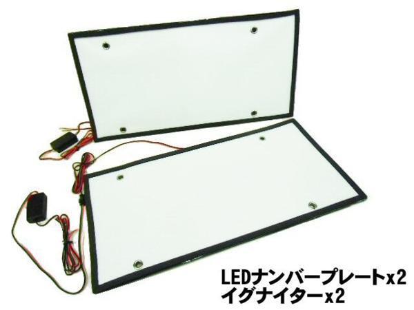 ■電源:DC24V/12V兼用 ■LEDナンバープレート×2枚(前後) ■イグナイター×2 ■発光色:高輝度白色LED ■防水仕様 【サイズ】 ■425mm×210mm×3mm+クッション前後2mm |