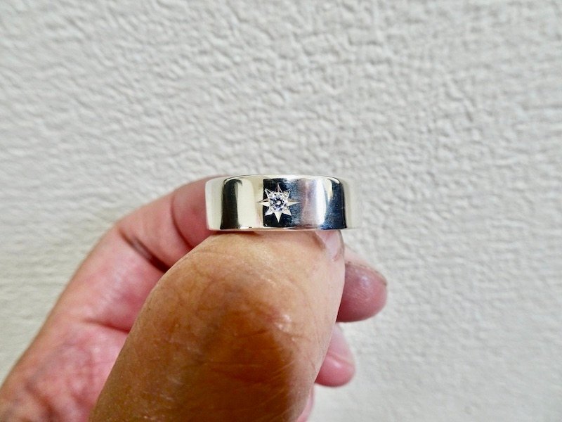 | ■ ■ 商品名: 『一つ星2.3mmダイヤ、幅7mm、平打リング』 ■ ■ |
