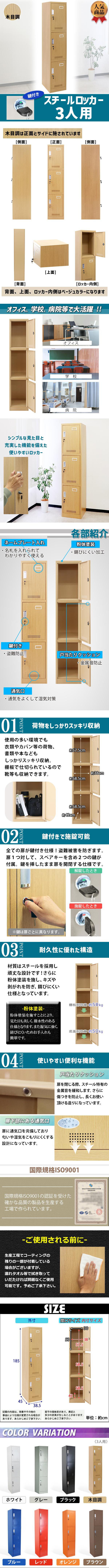 | 商品名 | 送料無料 ロッカー おしゃれ スチールロッカー 3人用 木目調 鍵付き スペアキー付 1列3段 スチール製 収納 オフィス 事務所 会社 業務用 スリム かぎ付き 更衣ロッカー オフィスロッカー キャビネット オフィス用品 ナチュラル 10-007new | 商品サイズ |