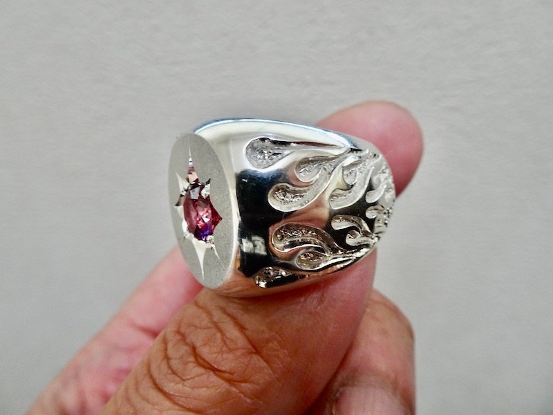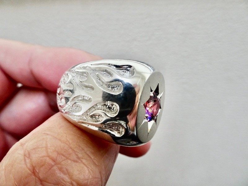 | ■ ■ 商品名: 『一つ星レッドジルコニア、ファイヤーパターン楕円の印台リング』 ■ ■ |
