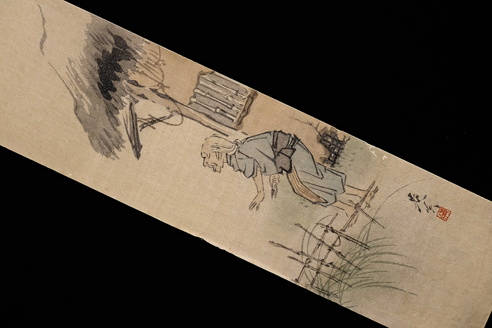 絹本肉筆未装短冊1点 作品寸法:35.6cm x 6.1cm 商品状態:良好。実際の品を画像にてお確かめ下さい。 ★本品は印刷ではなく肉筆保証の作品です。 ★本品は真作保証の作品です。 柴田是真(しばた-ぜしん) 1807-1891。江戸後期-明治時代の日本画家,漆芸家。 文化4年2月7日生まれ。古満寛哉(こま-かんさい)に蒔絵(まきえ)を,鈴木南嶺,岡本豊彦に円山四条派の絵をまなぶ。天保(てんぽう)11年江戸の王子稲荷神社に絵馬「鬼女図」を奉納,評判となる。のち蒔絵の青海波(せいがいは)塗を復活させ,内外の博覧会に蒔絵額,漆絵を出品し受賞。明治23年帝室技芸員。明治24年7月13日死去。85歳。江戸出身。名は順蔵。字(あざな)は然(たんぜん)。別号に令哉,対柳居。 出典:講談社『デジタル版 日本人名大辞典+Plus』 |