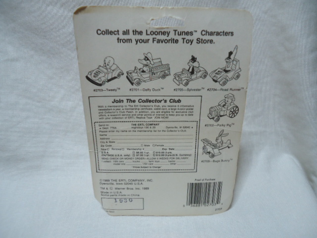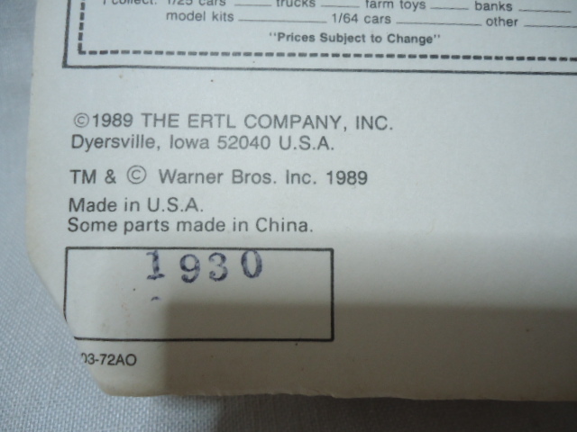 米国にて、個人の方より、購入しました。1989年製。新品未開封デッドストック物ですが、多少パッケージ損傷あります。ERTL社製。スチール・プラスチック製。タイヤ、動きます。サイズは、全長約7.8センチ・車幅約3センチ・高さ約4センチです。24時間以内に、お手続き入力後、期限内にかんたん決済、出来る方のみ、ご入札をお願い致します。この商品は、1点物です。 2601