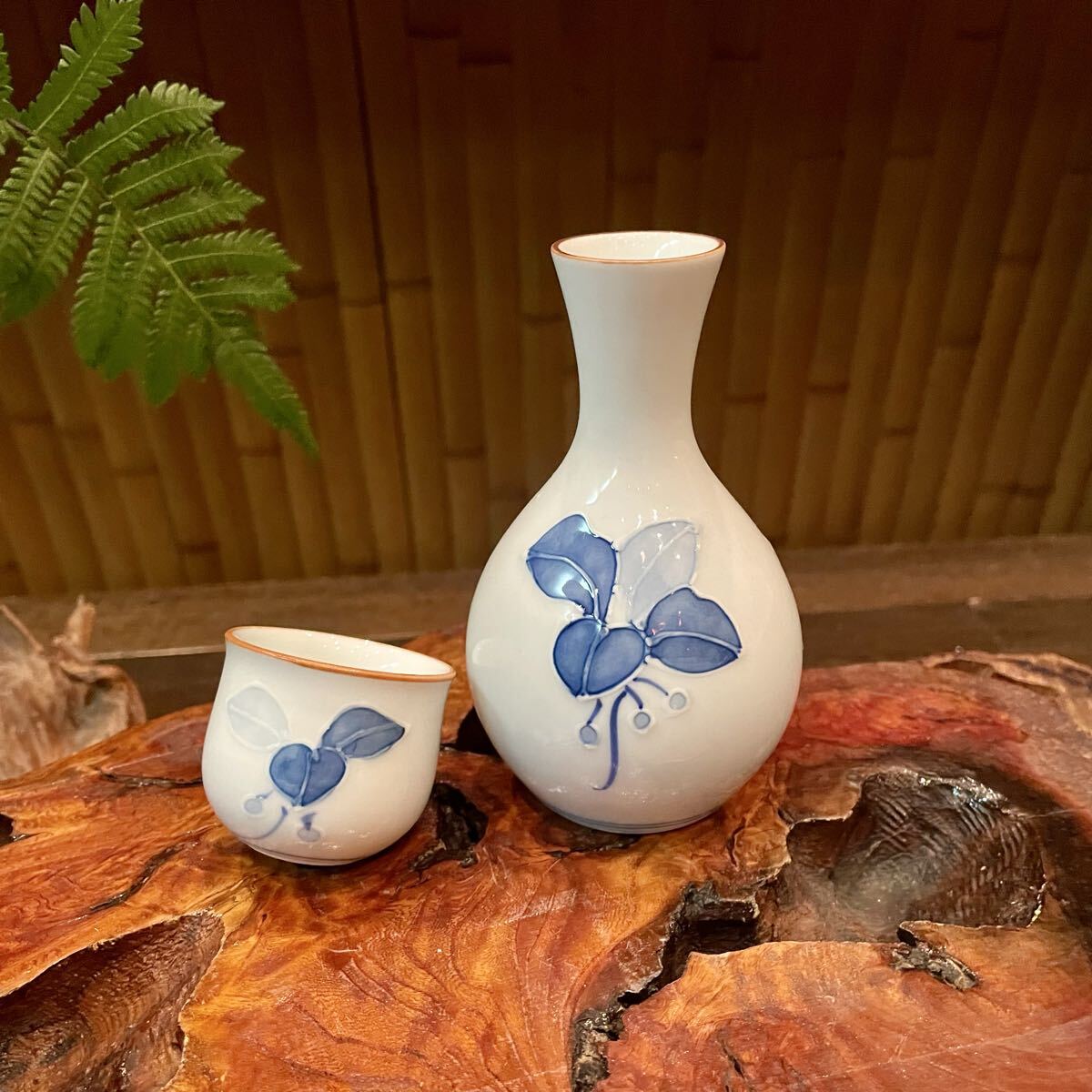 波佐見焼 一珍 染付 万両 酒器☆猪口 盃 杯 晩酌 徳利 ぐい呑 古民家 粋 レトロ 風雅 膳 数奇 風流 風情 侘び寂び 伝統工芸 吉祥 縁起 鯨皮