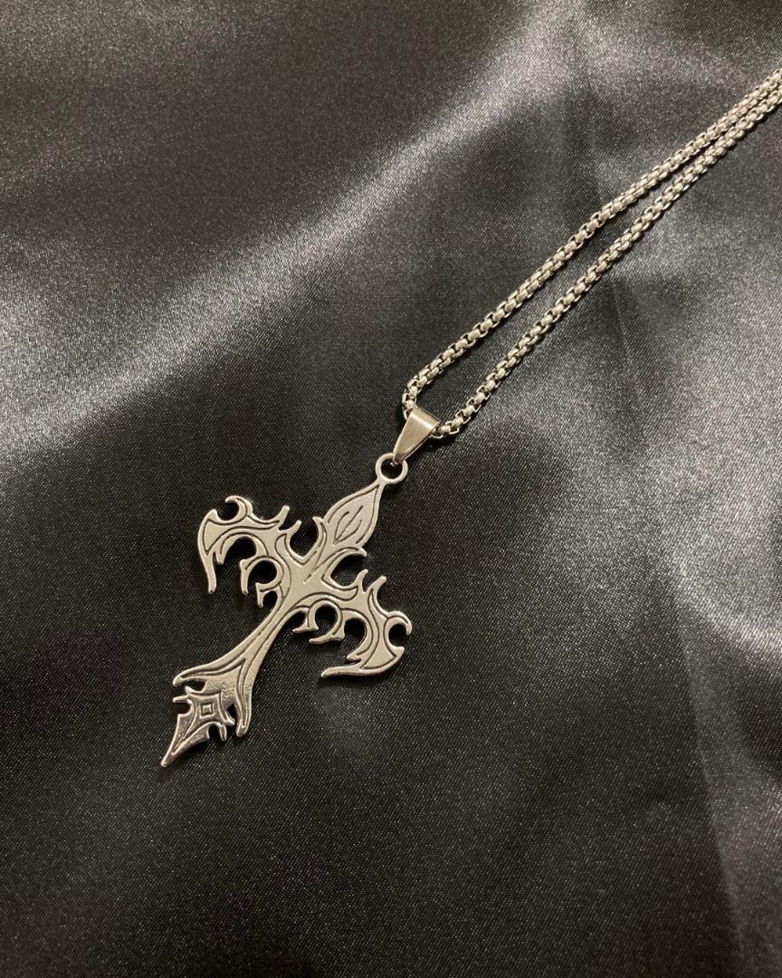 炎をモチーフにしたようなトライバルデザインが印象的な、クロスペンダントネックレス! ゴシック・ロック・V系・ストリートなど、クールなコーディネートと相性抜群のアイテムです。 立体的なフォルムと光沢感のあるシルバーカラーが、 首元にしっかりとした存在感を与え、1本でコーデを引き締めます。 ユニセックスデザインで、男女問わず着用可能☆ 個性派コーデやステージ衣装、韓国ストリート系にもおすすめです。 ポイント ・トライバル×クロスの立体デザイン ・ロック・ゴシック系コーデに映える ・ユニセックスで着用可能 【カラー】シルバー 【状態】新品未使用 クールで存在感あるアクセをお探しの方にぴったり。 即購入OK・送料無料でお届けします! A016