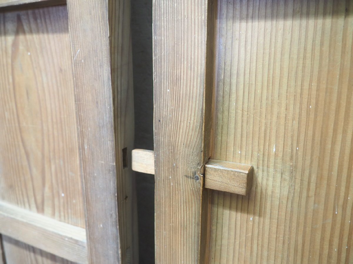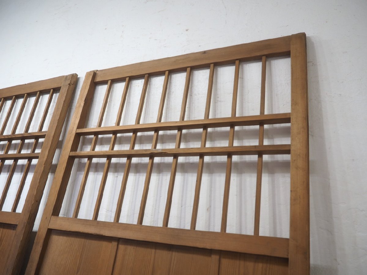 商品情報 | ■商品詳細■ レトロな大きい木製引き戸、2枚セットです。 長年使い込まれた味わいのある品です。 なかなか入荷しない希少な特大サイズです。 一般のご家庭はもちろん、レトロな店舗什器にもお勧めです。 経年の傷や欠け、染みや木枠に欠け、 ヒビや落としきれない汚れ等がありますが、使用には問題ありません。 風合いを損なわないよう、掃除はエアー掛けのみのみとなります。 古い物とご理解いただければ幸いです。 ◆別カテゴリーにて、同じデザインの品(X1911~X1913)を出品していますので まとめてご希望の場合は、ストア内検索で上記の管理番号を検索して頂ければと思います。 売買済みの場合はご了承下さい。 ご不明な点などありましたら、質問欄にてお願いします。 ■サイズ■ 全体(最大値) (H 213cm×W 89cm×D 3,5cm)×2枚 竪框 4,5cm 鴨居に入る部分 2cm 多少の誤差はご了承下さい。 ドライバー1人での配達になりますので、場合(通路が狭い等)によっては 荷運びのお手伝いをお願いすることがあります。 商品は玄関先までの配達になります。 |