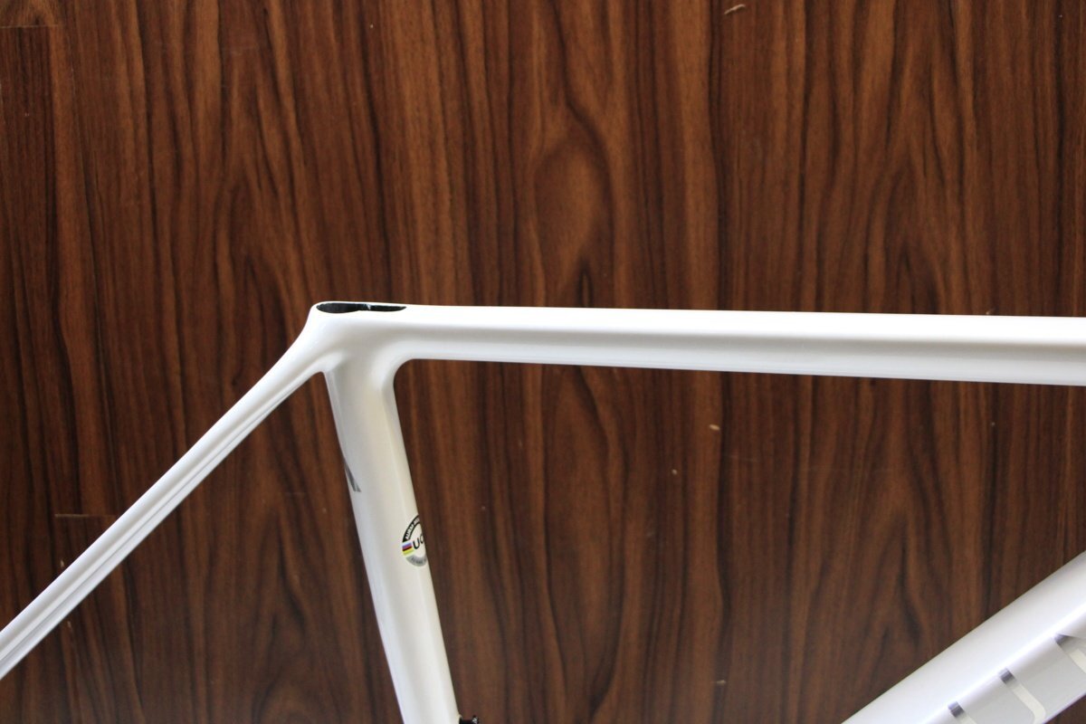 | 仕様 | 年式:~2023年継続モデル V1 フレーム:カーボン フォーク:カーボン BB:BB386 EVO FDマウント:直付け シートポスト:27.2mm コラム径:OS コラム残長:150mm OLD:100x12mm/142x12mm thru サイズ:48 トップチューブ長(C-C):515mm ※ホリゾンタル換算値 シートチューブ長(C-T):453mm 適応身長:158cm~165cm 程度 実測重量(フレーム/フォーク):940g / 370g ※掲載画像状態 |