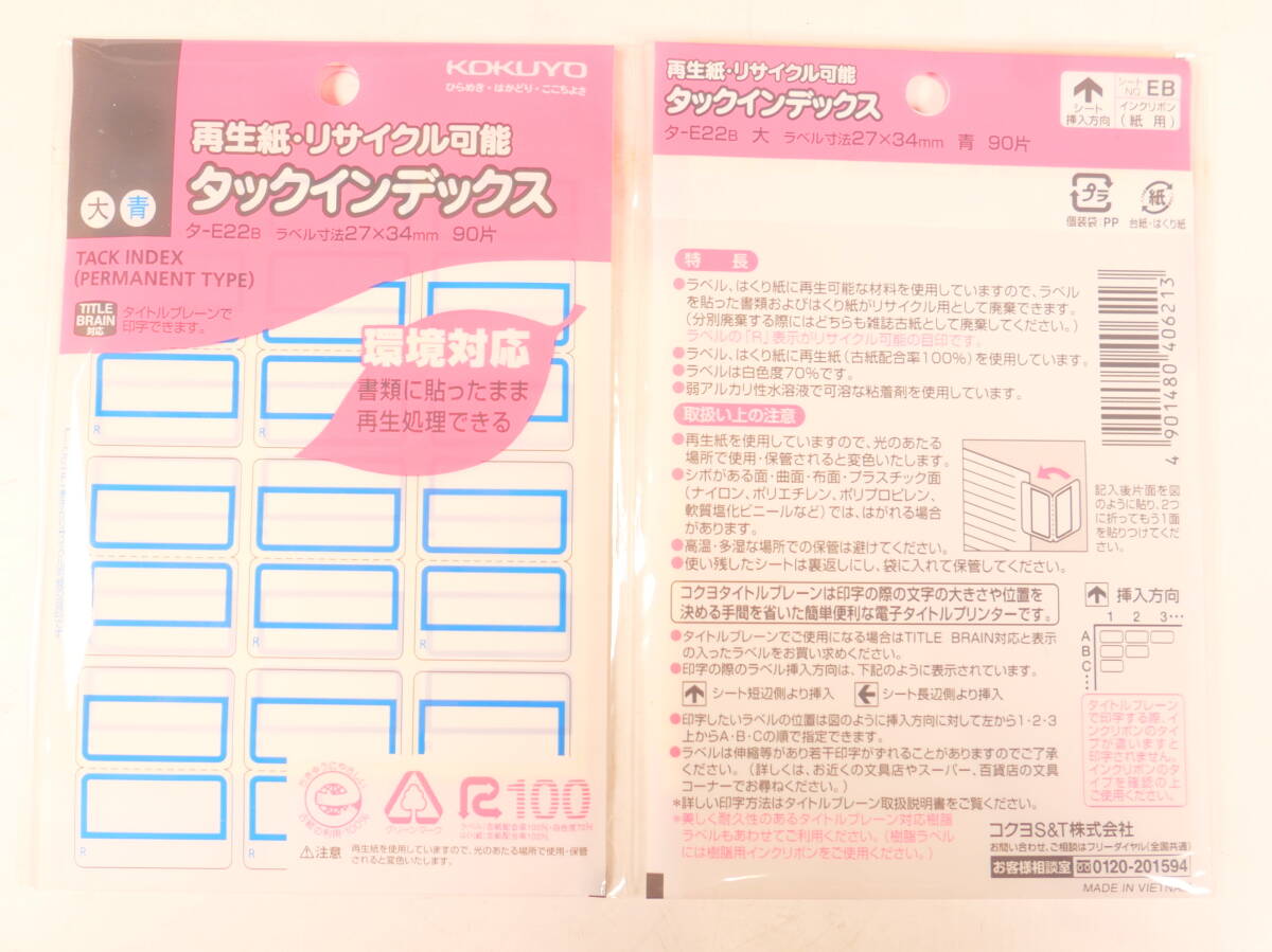 | 中古フレグランス★KOKUYO コクヨ タックインデックス 大 青 タ-E22B 27×34mm 90片 18袋セット | ||