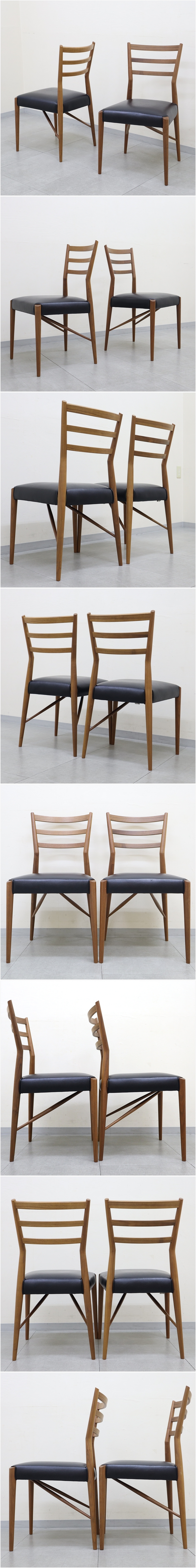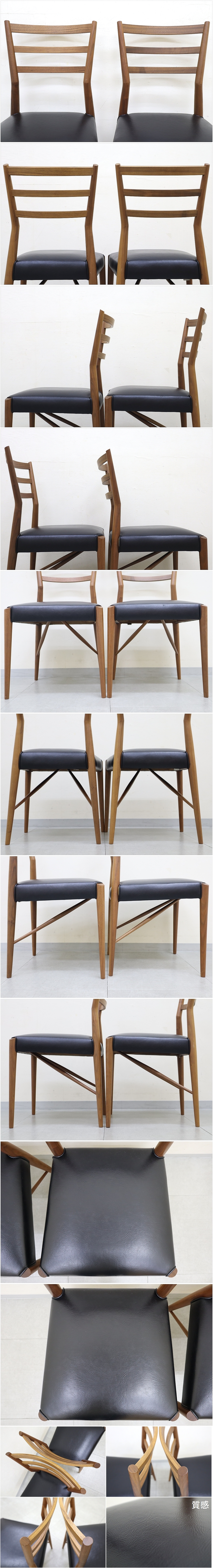 1 飛騨家具 日進木工 nissin GROW グロウ ナチュラルブラウン ダイニングチェア NCC-406 張り込み ブラックウォールナット 椅子 2脚 無垢材