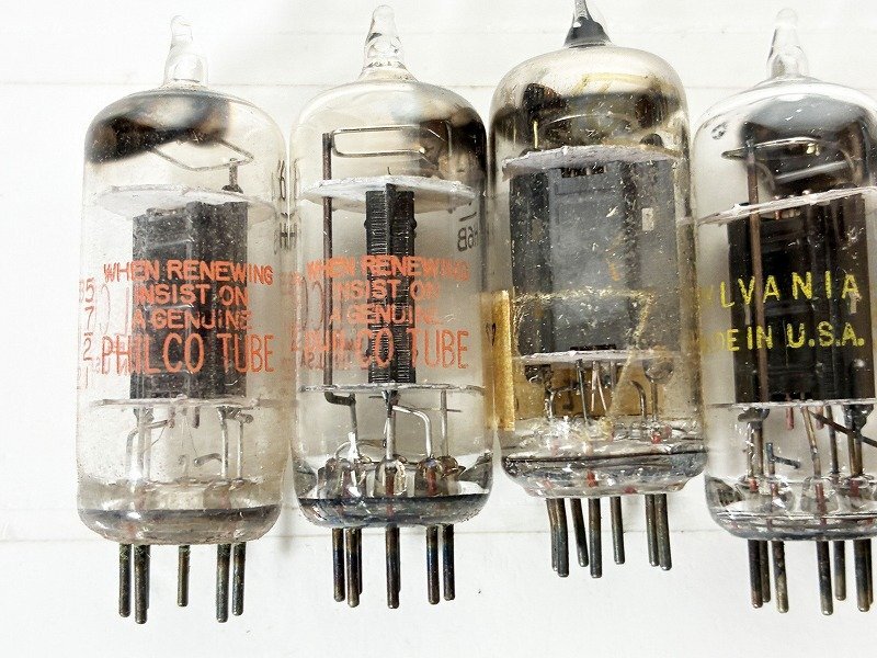PHILCO,GE,SYLVANIA 6C4/EC90/6135/QL77/QA2401 7本です。 チューブテスターでチェック済品。 定格55に対して、106、108、98、108、71、80、100です。 |