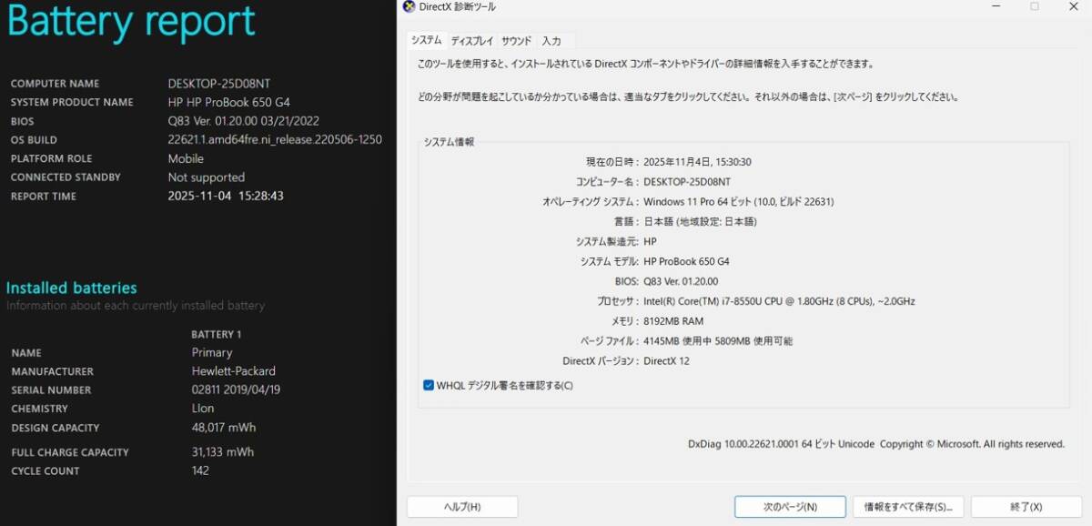 | OS | Windows 11 Pro (ライセンス認証済) |
