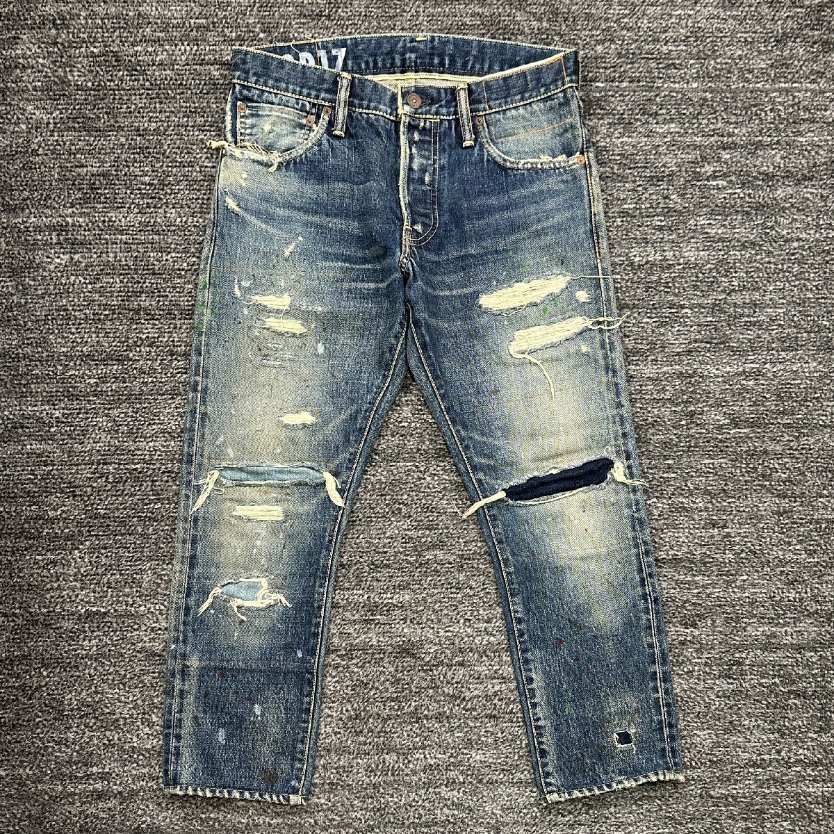 表記サイズ W32×L28 (実寸)ウエスト 80cm 股下 65.5cm 股上 25cm 腿幅 31cm 裾幅 17.5cm サイズの計測方法一覧はコチラをご覧下さい。 |