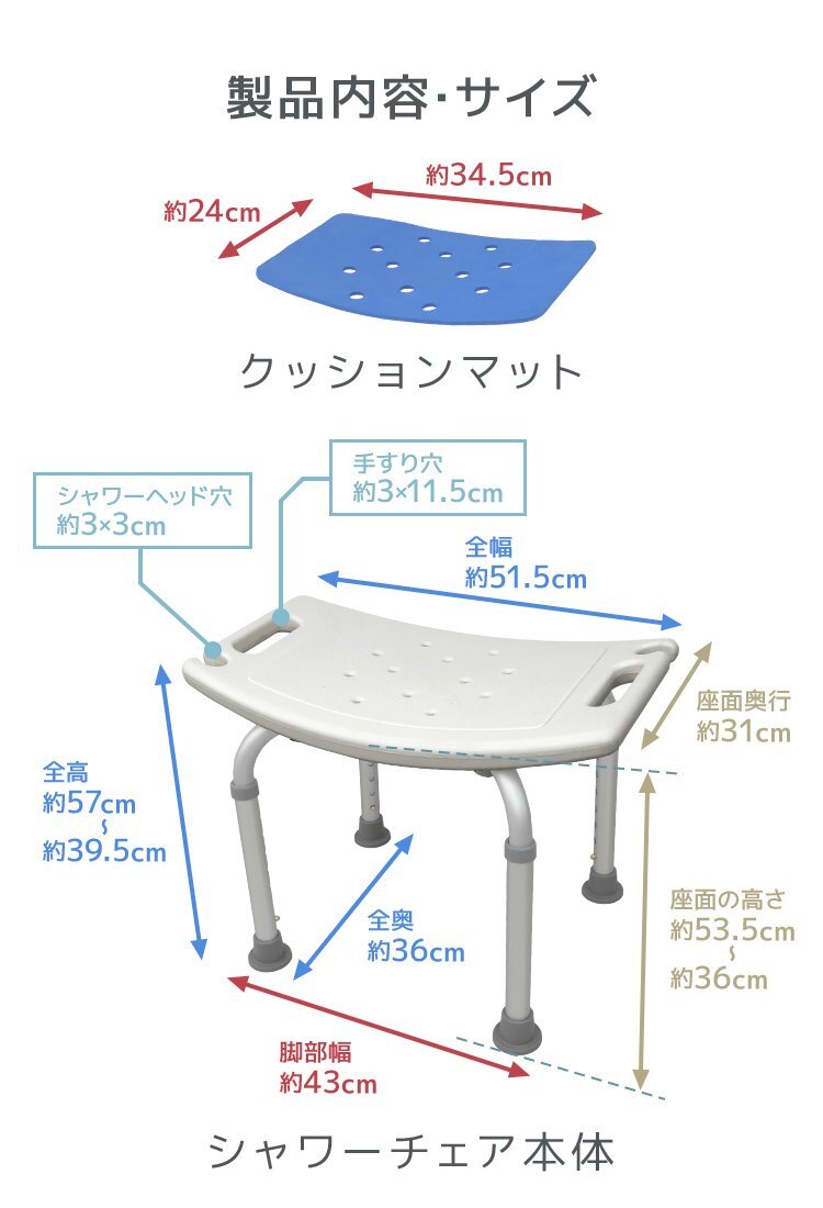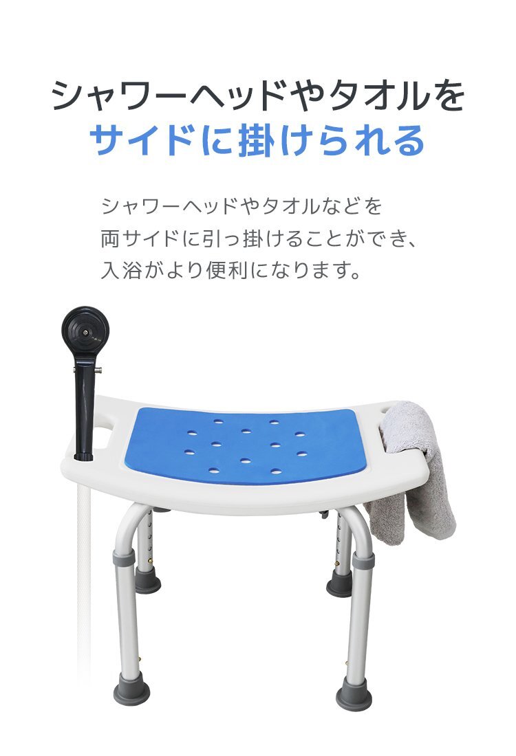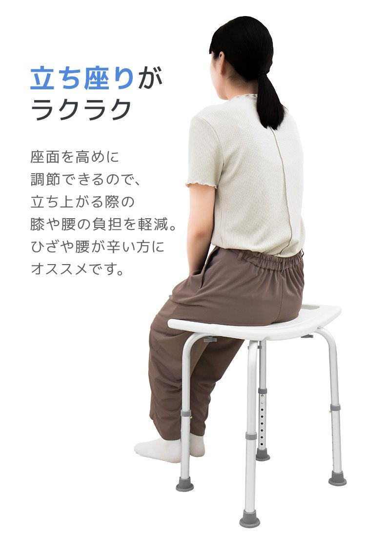 \ 8段階調節可能な座面 / 膝や腰の負担を軽減!シャワーチェアです。 身体に合わせて8段階の高さ調節ができ、立ち上がる際の膝と腰の負担を軽減できます。 ボタンを押しながらスライドさせて簡単にお好みの高さに変更可能! シャワーチェアの脚の先は滑りにくいゴム製になっているので転倒防止になります。 座面に排水穴があり、水がたまらないので清潔! クッションマット付きでひんやりを解消! フレームは丈夫なアルミ製で、丸みを帯びた曲線が身体にフィット感をもたらします! 座面部は、滑り止め加工が施され、安心して使用いただけます。 立ち上がり用の取って付き!立ち座りの際に便利です。 軽量なので、移動するときもラクラクです。 ■商品コード:HBC002BL ■商品仕様 カラー:ブルー サイズ:(約)幅51.5cm×奥行36cm×高さ39.5~57cm(全体) 重量:(約)1.9kg 耐荷重:(約)150kg 素材:アルミニウム、ポリエチレン 他 ■注意事項 ・座面の上に立ったり、脚をかけたり、飛び乗ったりしないでください。 ・直射日光またはストーブ等の熱は避けてご使用ください。 ・本製品を改造、分解しないでください。 ・本製品を用途以外で使用しないでください。 ・使用中にガタつきなどがみられる際は、ネジを締め直してください。 ・商品は、モニターによって色合いが異なって見える場合があります。 ・仕様・デザインは改良のため予告なく変更することがあります。 ■保証期間 7日間 ※商品到着後7日以内の初期不良・破損のみご対応させていただきます。 【新品未使用品です】 |