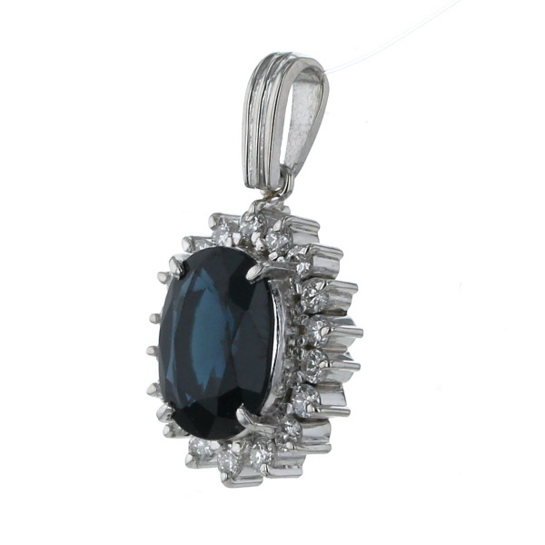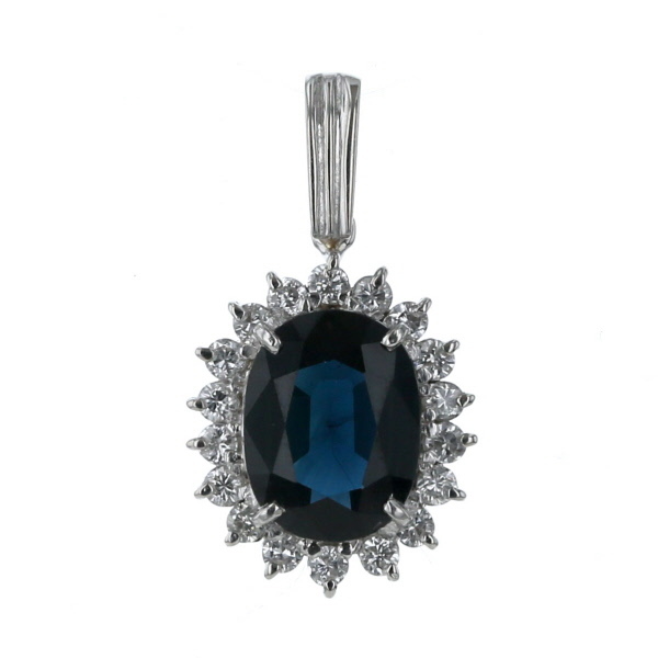 | 商品紹介 | プラチナで作られたペンダントトップです。 オーバル型のサファイアの周りを、ダイヤモンドで囲んでいます。 コントラストがハッキリとし、神秘的で気品がある素敵なデザインです。 |