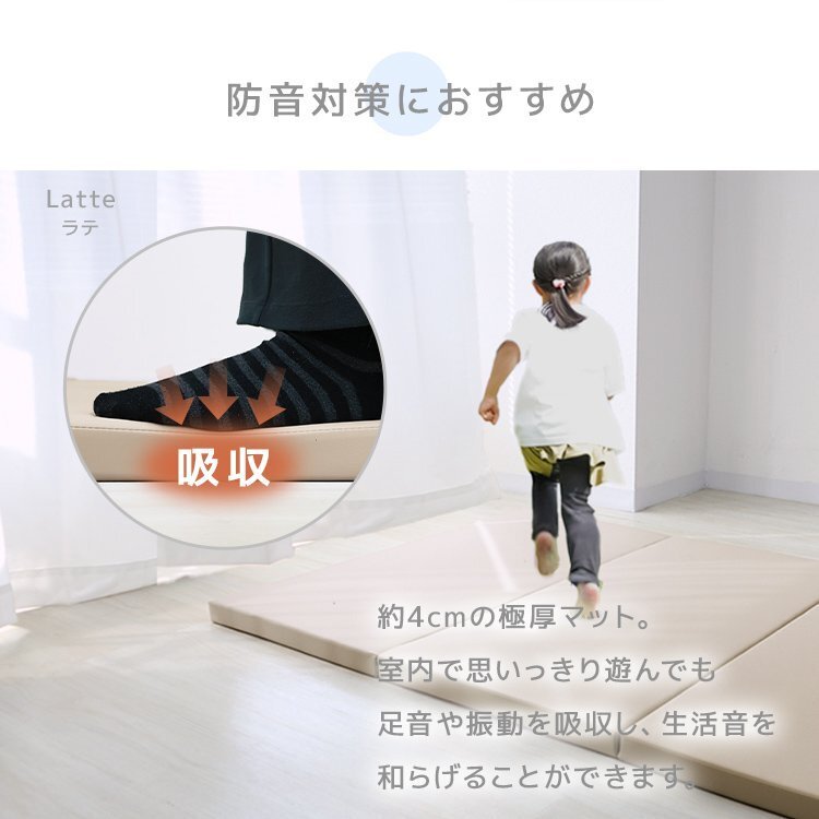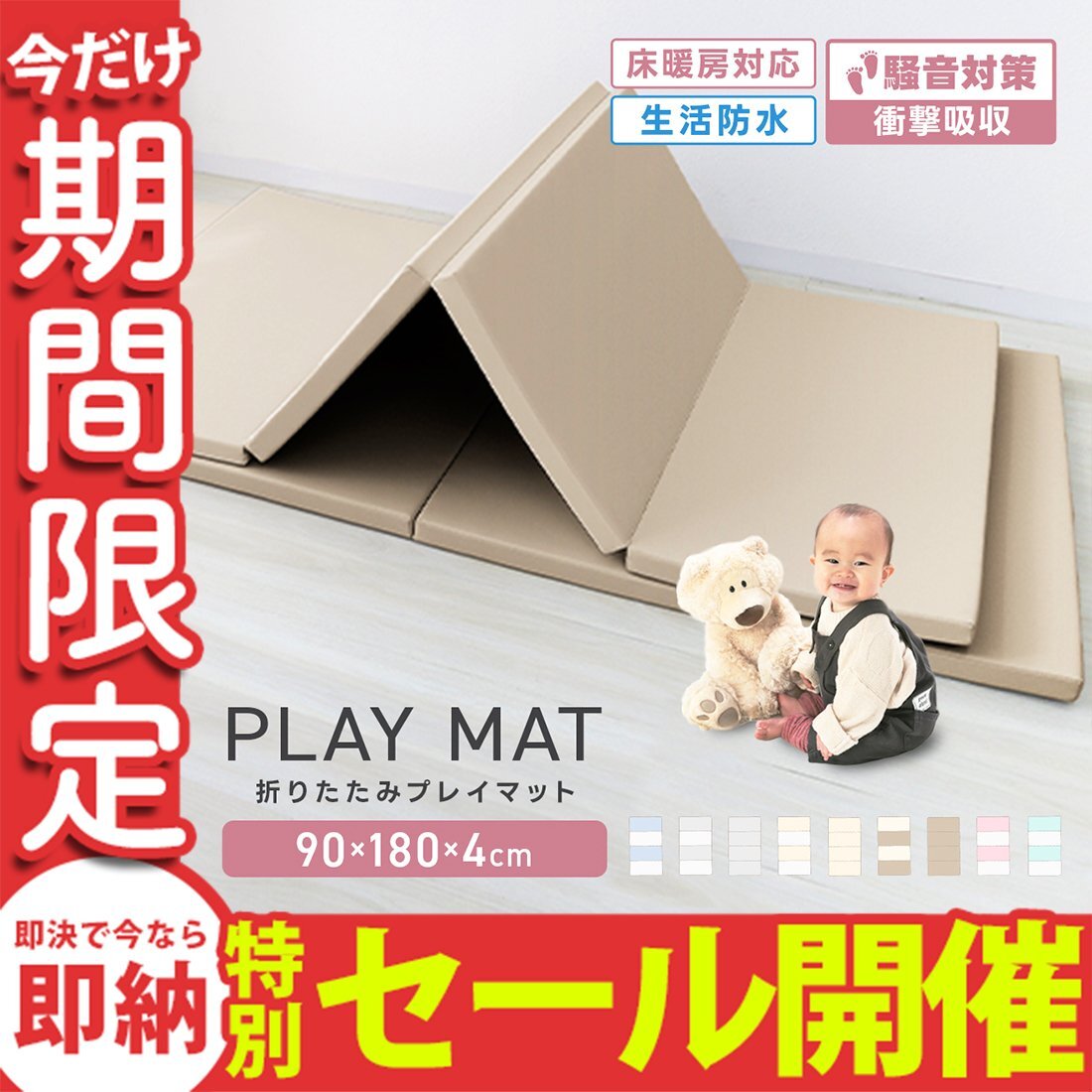 | 思いっきりジャンプ、思いっきり遊んでも大丈夫! 赤ちゃんの安全に遊べるスペースや寝返りマットとして、 元気なお子さまがいるご家庭のプレイマットとして大活躍! 4cmの厚さ、柔らかすぎずちょうど良い硬さで、衝撃吸収はもちろん、 軽くて弾力があり、お子様が転んでしまっても、痛みやケガを防止します。 また、お子さまがお家の中で元気いっぱいに遊んだ時の気になる騒音もしっかり吸収します。 折りたたむことができるのでコンパクトに収納することができます。 リビングでのお昼寝スペース、オムツ替えマット、ハイハイマット、ベビージム、 プレイジム、クッションマット、ラグマット、体操マット、トレーニングマット等、 様々な用途でお使いください♪ 本製品は、ホルムアルデヒド検査基準と染料検査に合格した こだわりの製品仕様となっているため、 小さなお子さまにも安心してお使いいただけます。 【商品仕様】 カラー:ラテ(単色) サイズ:(約)90cm×180cm×4cm(4段1枚) 折りたたみ時のサイズ:(約)90cm×45cm×17.5cm 重量:(約)2kg ※新仕様は2.8kg 素材:ポリウレタン、発泡ポリエチレン |
