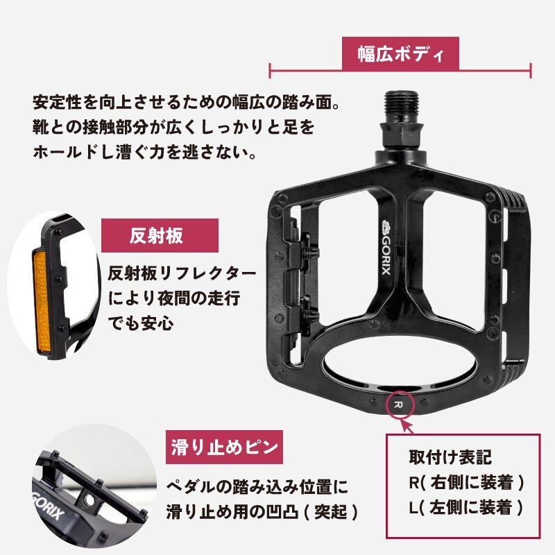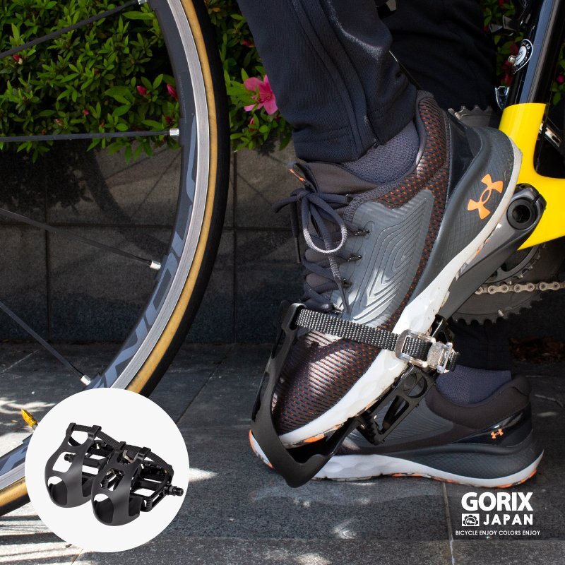 ペダルとトゥークリップ、ストラップ付のバラでも使える一式セット。 簡単にシューズを着脱する事ができてどんな靴でも使えるトゥークリップはサイクリング、ポタリング、自転車通勤や自転車通学など様々なシーンでお使い頂けます。 またロードバイクやクロスバイク、MTBだけでなく室内でのエクササイズバイクやフィットネスバイク・スピンバイクにも最適。 つま先をトゥークリップに入れてペダルを漕ぐ、引き足を使えて効率の良いペダリングが可能となります。 固定具合はストラップで調整します。強く締めすぎるとつま先が抜けにくくなるのでスムーズに抜ける程度に緩く調整するのがおすすめです。 トゥークリップ、ストラップを外しても普通にペダルとしてお使いいただけます。 [一式セット] バラでも使える一式セットはペダルとトゥークリップ、ストラップ付き。 トゥークリップ、ストラップに対応するペダルを選ばなくてもOKですぐに装着して使える。 [トゥークリップ] ペダルに装着してつま先を挟む事でシューズとペダルを固定します。 トゥークリップとストラップを利用する事でシューズでもビンディングペダルのように固定するためペダリングの際に引き足も使うことができ、効率よくペダリングをすることができます。 柔軟性、ホールド性に優れている樹脂素材を使用し靴を傷つけづらいという特徴もあります。 [ストラップ] 調節が可能で締め付け具合によって脱着のしやすさを調整できます。 ストラップの付け方を緩めにしておけばつま先が抜けやすくなりますので、初心者の方には特におすすめです。 [どんな靴でも] スニーカーだけでなく革靴など様々なタイプの靴で使えるので自転車通勤や自転車通学でも使いやすい。 サイクリングや街乗り途中でコンビニや飲食店なども気軽に立ち寄りやすい。 [ペダル] ワイドな幅広タイプで踏み面が大きので踏みやすい形状となっています。 ぺダルの表面には滑り止めピンが設置してあり靴とペダルの滑りを軽減。 後ろ側には反射板リフレクターにより夜間の走行でも安心。 [CNC加工] CNC工芸でアルミ合金を材質にして、表面がスムーズで傷がなく、耐摩耗性、耐腐食性がよいです。 [カジュアルに] 通勤・通学や街乗り、ツーリングにマルチに使える。 六角レンチでも交換可能なのでペダルの取り付けも簡単に。 取付け用の六角レンチは付属しています。 (※ペダル取付け時は固着防止のためグリスを塗布する事をおすすめします。) 室内フィットネスバイク・スピンバイクにも最適! 商品内容フラットペダル、トゥークリップ、ストラップ、取付け工具 重量375g/セット 仕様ダブルDU、フラットペダル、トゥークリップ一体式セット サイズ(ペダル)長さ105x幅112x厚み22mm、軸長52mm軸径:標準9/16インチ(ネジ径 約14.3mm) (ストラップ):全長50cm,調節範囲約6-9cm (クリップ)幅最大10.5cm, 高さ5.5/10.2cm; 重量26.2g 材質(ペダル)アルミ合金本体、クロモリ鋼軸(ストラップ)ナイロン(クリップ)樹脂素材 適用フィットネスバイク、スピンバイク、MTB/ロードバイク、街乗り自転車、クロスバイクなど 商品は入荷によりキズがある場合があります。 傷や細かい汚れが気になる方や神経質な方は入札をお控え下さい。 入荷時期により予告無く一部仕様変更する場合が有ります。 カラーはディスプレイ種類環境等により実物と異なって見える場合がございます。 |