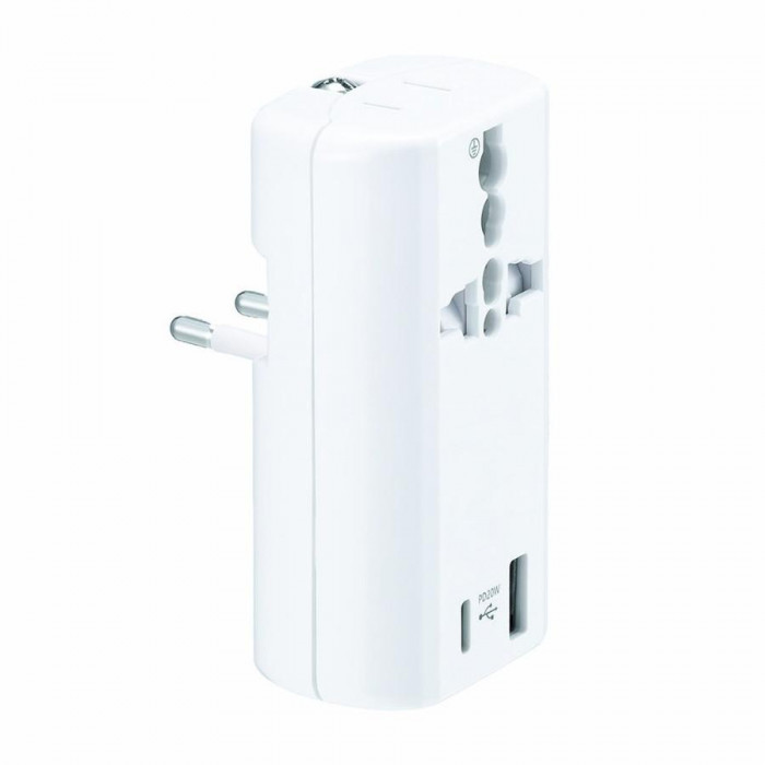 | 海外でもスマートフォン、タブレットなどを簡単に充電ができます。PD20W対応、自動判別機能付で効率的に急速充電します。これ1台でタイプA、C、O、BF、SEの5タイプのコンセント形状に対応しています。電圧も240V-10A(2個口合計)まで対応しています。世界主要な国々で使用する事が出来ます。 ※日本国内にて本品を使用する事はできません。 ※本品は日本の電気製品を海外で使う為のプラグアダプターです。 ※電圧の変換はできません。 |