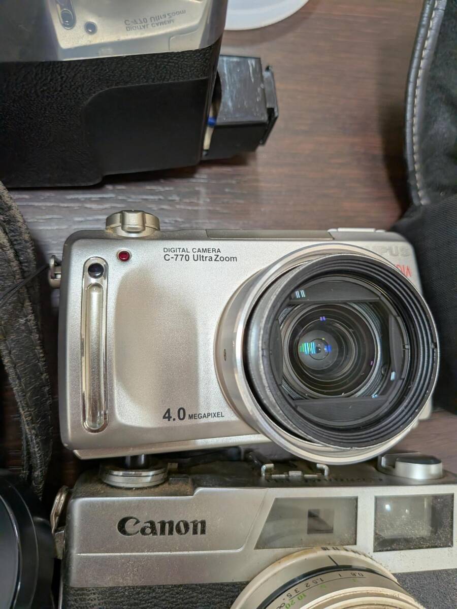 | #1771 カメラ5台 その他4点 計9点一眼レフ PENTAX/Canonnet28/OLYMPUS CAMEDIA C-770デジカメ/KODAK DISK/Autoboyなど ジャンク | ||