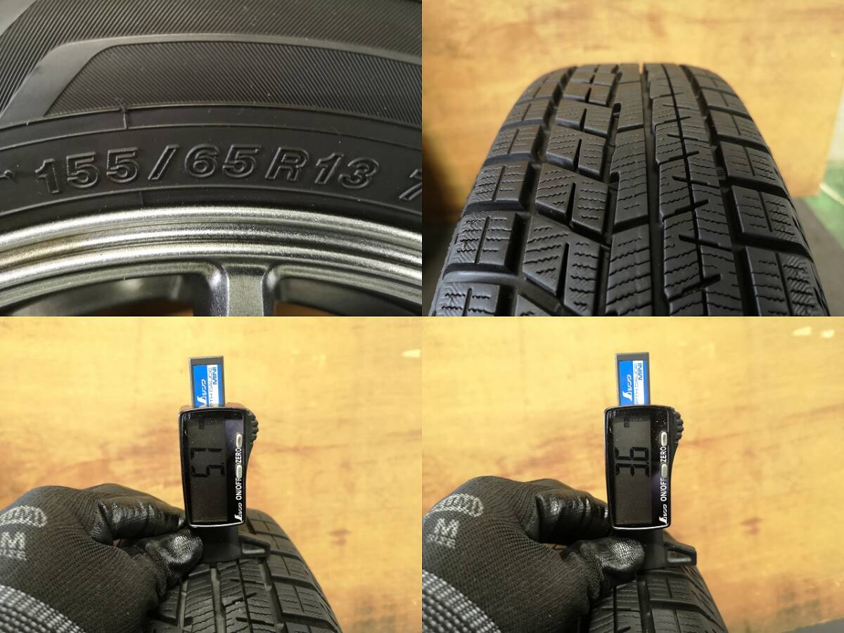 ○説明は必ず全てご確認下さい。 ○落札後、自動配信されるメールをご確認下さい。 ★★★★★★★★★★★★★★★★★★★★★★★★★★★★★★★ 商品区分=中古品 【タイヤ】 メーカー=ヨコハマ・アイスガードiG60 サイス゛=155/65R13 製造年週=2022年22週 残り溝=プラットホームより3.6㎜・スリップサインより5.7㎜ 本数=4本 製造年週は揃っていない場合も有ります。 一番古い年週を記載しております。 【ホイール】 サイズ=13x4J+43 PCD=100 穴数=4H ハブ径=約67㎜ 画像の物で全てです。 ▲ヤ2・25101668・3A▲ *********************************************************** 【状態】 1本ディスク部に1㎝のガリキズが有ります。 1本センターキャップが欠品しています。 中古品ですので、その他の多少のキズはご了承下さい。 バルブは劣化や損傷が見られる場合は交換してご使用下さい。 ホイールバランスは落札者様にて必要に応じてバランス取りを行ってご使用下さい。 | ||||