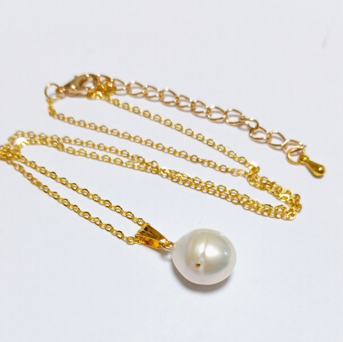 色、照りもきれいなバロック淡水パールのペンダントとチェーンネックレスです。パールには特有のサークルと貫通穴があります。| 出价者 | 信用 | 价格 | 时间 |