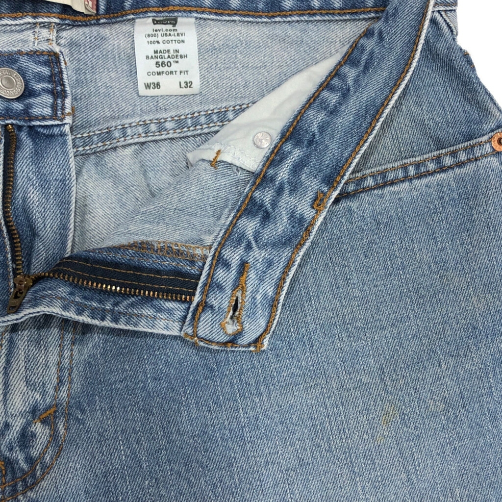 | 【商品管理番号】 U9943 【ブランド】 Levi's/リーバイス 【サイズ】 W36 L32 【実寸サイズ】 ウエスト:約86cm 股上:約31cm 股下:約77cm わたり幅:約35cm 裾幅:約21cm 【主な素材】 表地 : コットン 【色】 ブルー 【仕様】 560 【状態】 汚れ:腰、裾 キズ:裾 | |||