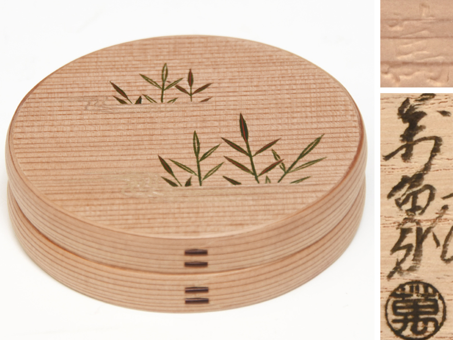 木具師 三代 橋村萬象 (造) 曲香合 共箱 共布 茶道具 香道具 木工芸 曲物 |