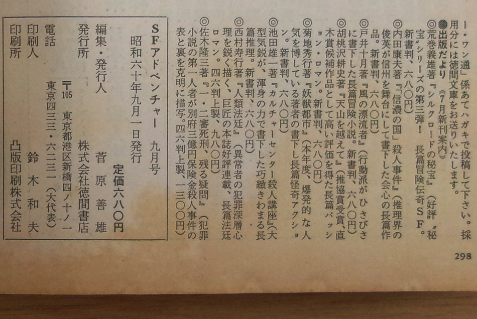 □ SFアドベンチャー 1985年9月号| 出价者 | 信用 | 价格 | 时间 |