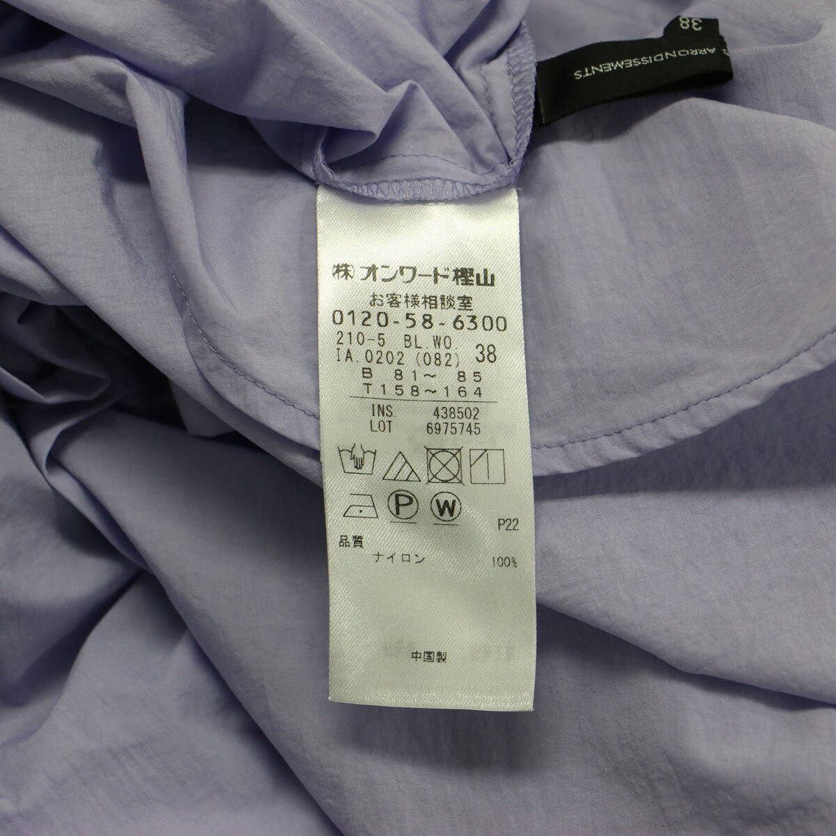 | 【ブランド名】23区(ニジュウサンク) 【リリース時期】2021年秋冬 【正式タイトル】ナイロンタスラン ラッフルカラー ブラウス 【品番】BLWOIA0202 【素材】ナイロン 100% 【商品説明】 ・ラウンドヘム ・前後着丈差あり ・手洗い可能(ウォッシャブル) 【カラー】ライトパープル 【サイズ】38(M) 着丈約73cm(背中襟下から)×身幅約50cm(脇下から)×肩幅約41cm×袖丈約58cm(肩上から) 【状態】B.中古(良品) 【付属品】なし ![]() ※色がある場合、モニターの発色の具合によって実際のものと色が異なる場合があります。 お問い合わせに関しましてはメールのみでのご対応とさせていただいておりますのでご了承下さいませ。 |