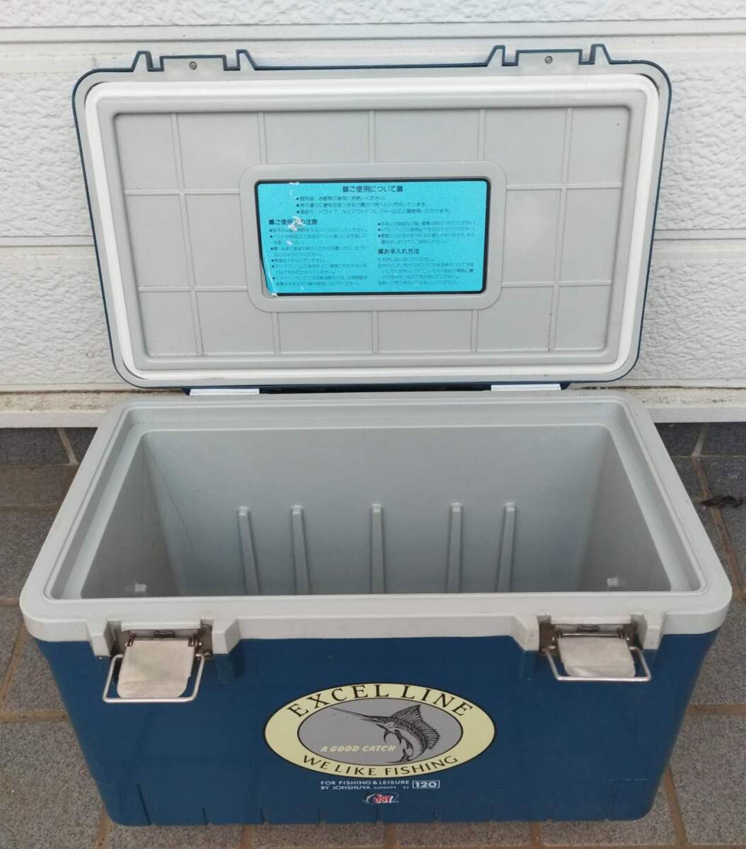 国産9L EXCEL LINE 120 クーラーボックス現状品の出品となり、サイズ約39㎝X24㎝X23㎝となり、経年により擦り傷、埃、割れ破損箇所、におい、汚れなどが出て来てしまいました、現状品と言う専門用語をよくご存知の方のご入札をお待ちしております
