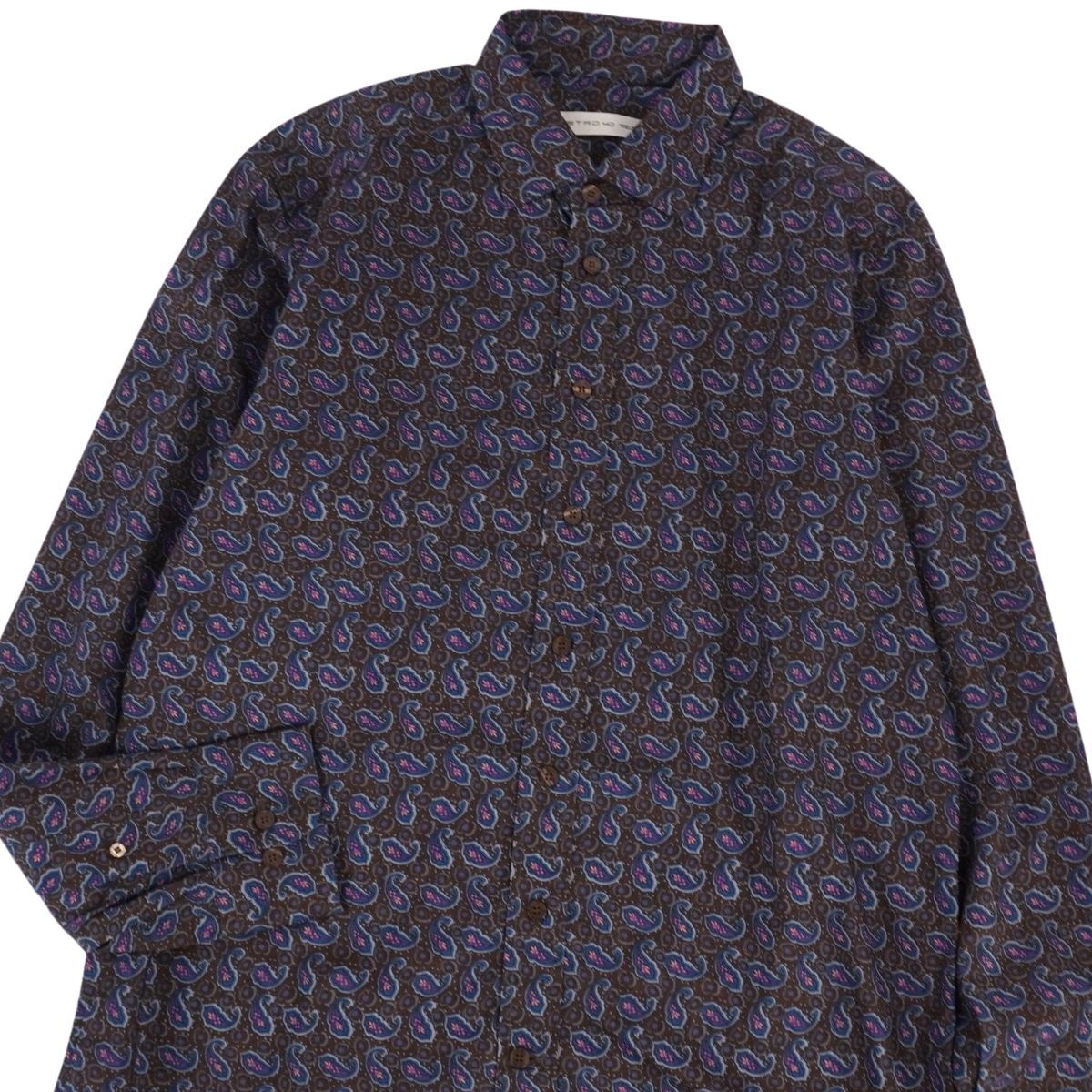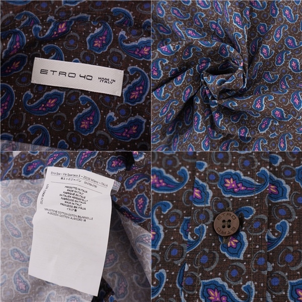 | 美品 エトロ ETRO シャツ ロングスリーブ 長袖 ペイズリー コットン トップス メンズ イタリア製 40 ブラウン/ネイビー |