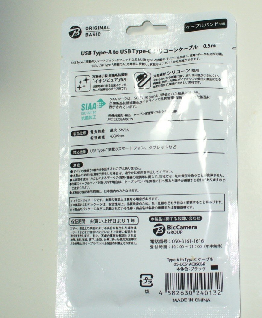 | 品名 | ★未使用品*USB Type-A to Type-C シリコーンケーブル**ケーブルバンド付属(OS-UCS1AC050Bk)0.5m**PD対応