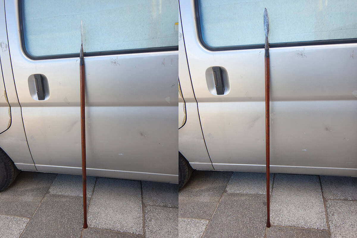 | 時代もの 猪槍 イノシシ槍 狩猟槍 マタギ 猟師 明治期 袋槍 全長:150cm 刀身:13cm 日本刀 刀剣 刀 登録証不要サイズ | |