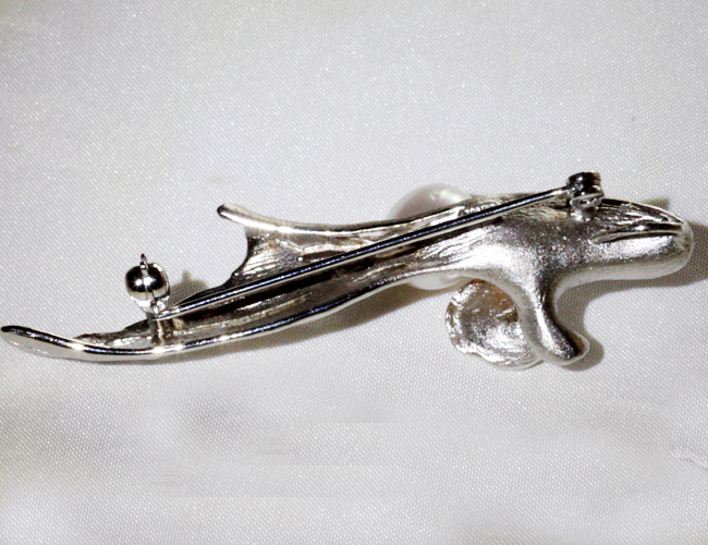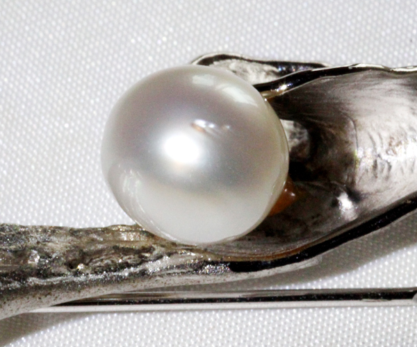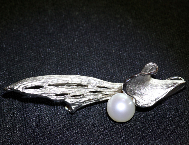 純白のつや消しシルバーに比較的大粒の真珠が映える魅力的なブローチです、真珠の種類等は分かりませんので画像で判断してください、 そのかわり信じられない激安価格のワンコイン500円からの出品です。 |