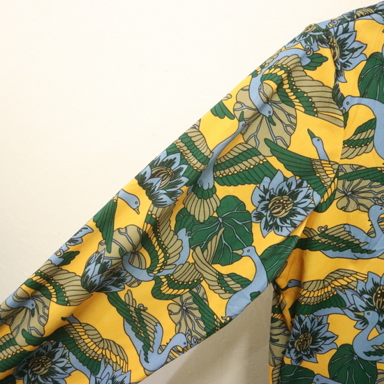 商品名 h895 70sビンテージ EllesBelles 長袖シャツ■1970年代製 約Sサイズくらい レディース イエロー 総柄 アニマル フラワー アメカジ 古着